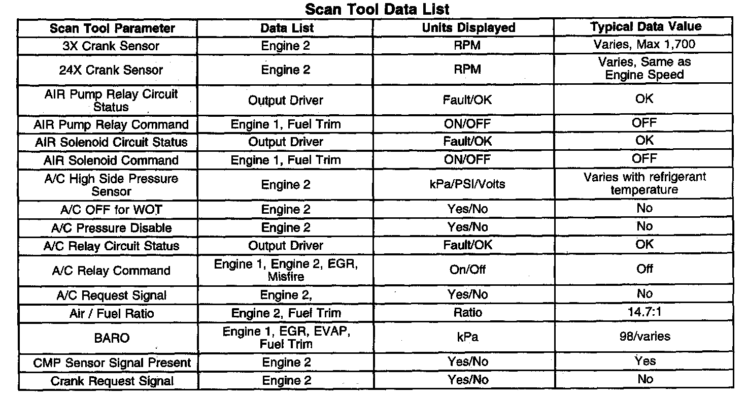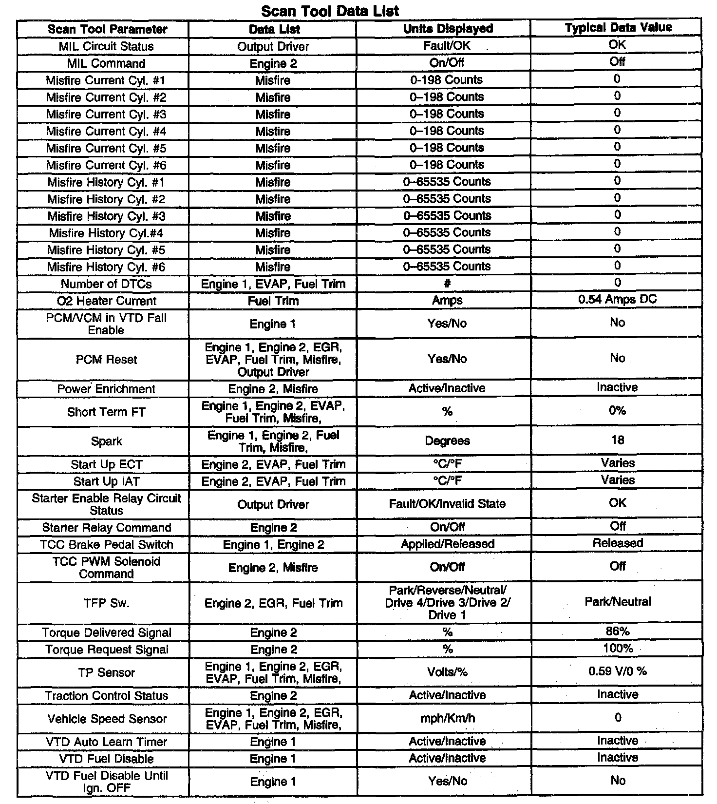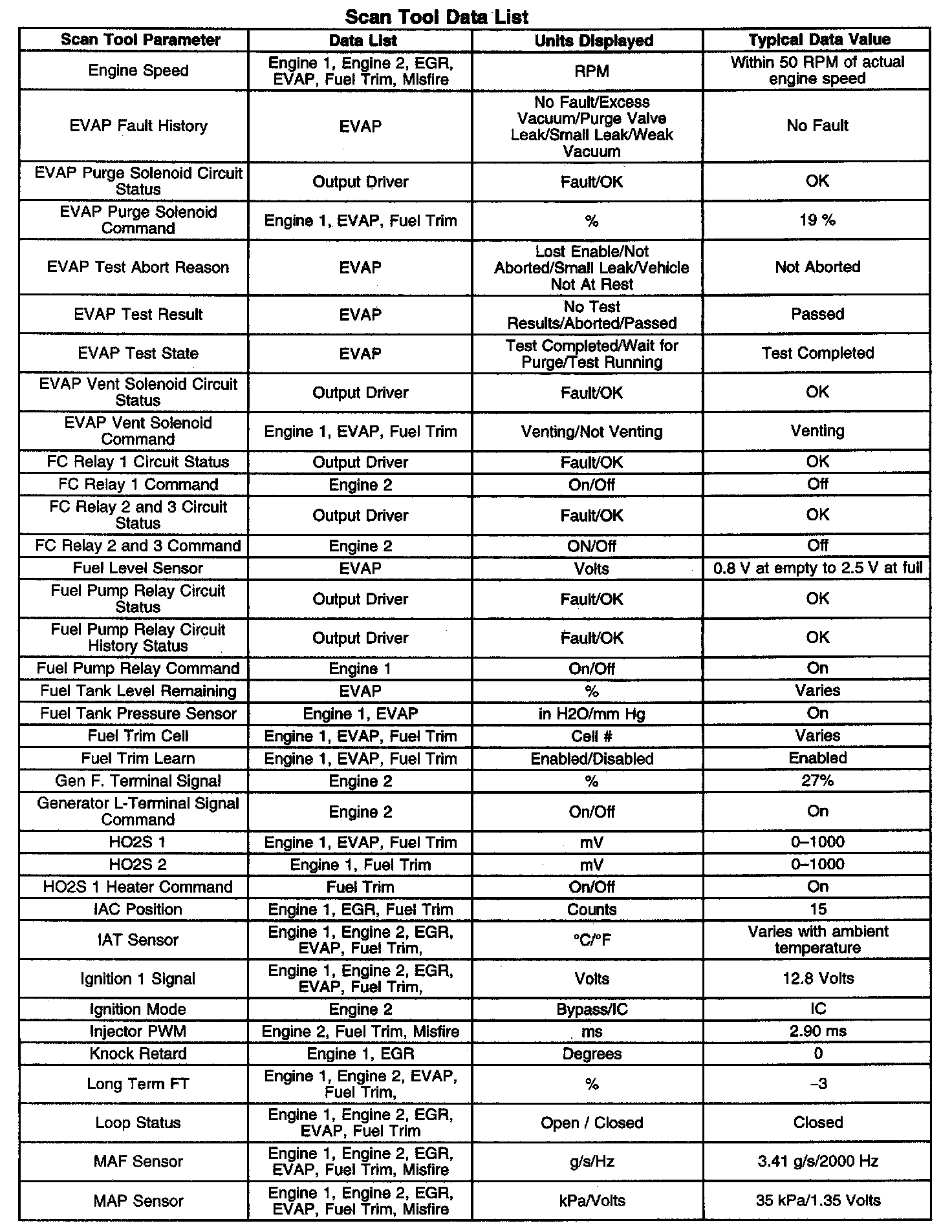 ^ Engine Data 1-Contains general information regarding fuel delivery, Intake Air Control (IAC) position, Heated Oxygen Sensor (HO2S) 1, HO2S 2, and other basic engine operating conditions.