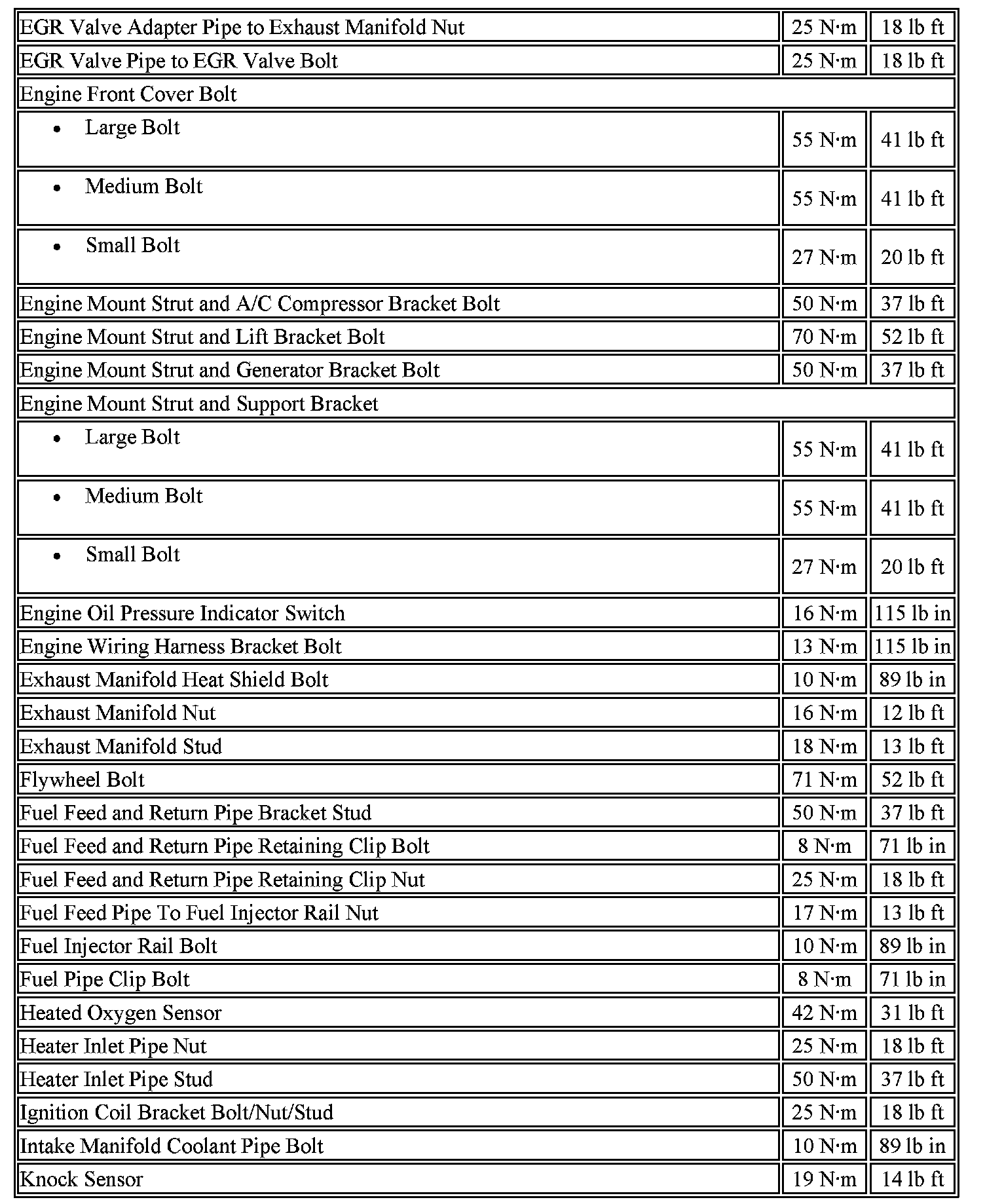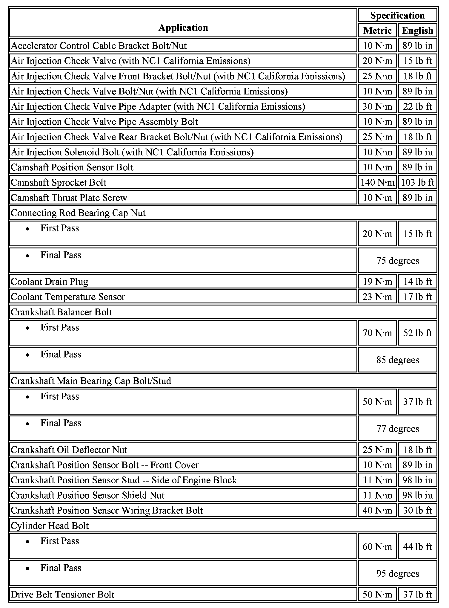 Fastener Tightening Specifications