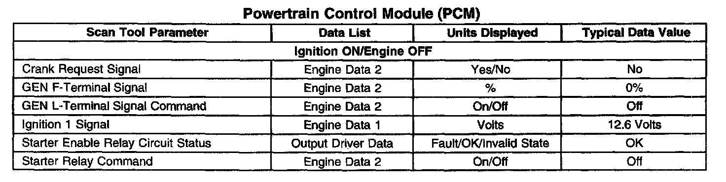Scan Tool Data List - Powertrain Control Module (PCM)