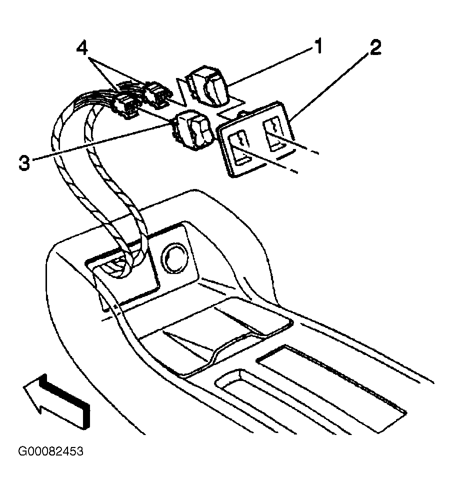 - Snap the switch plate (2) to the floor console. Connect the electrical connectors (4) to the switches (1, 3), if equipped. See Fig 3
