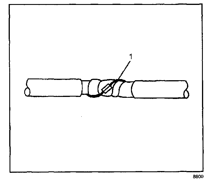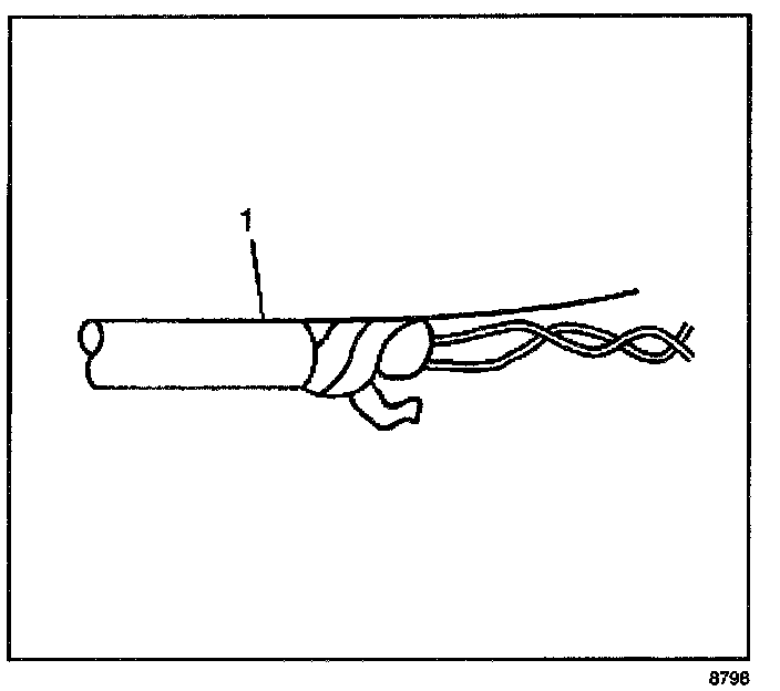 1. Remove the outer jacket (1). Use care not to cut into the drain wire of the mylar tape.