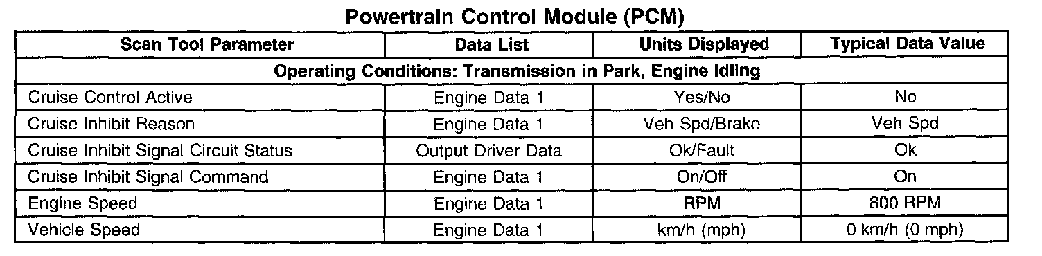 Scan Tool Data List - Powertrain Control Module (PCM)