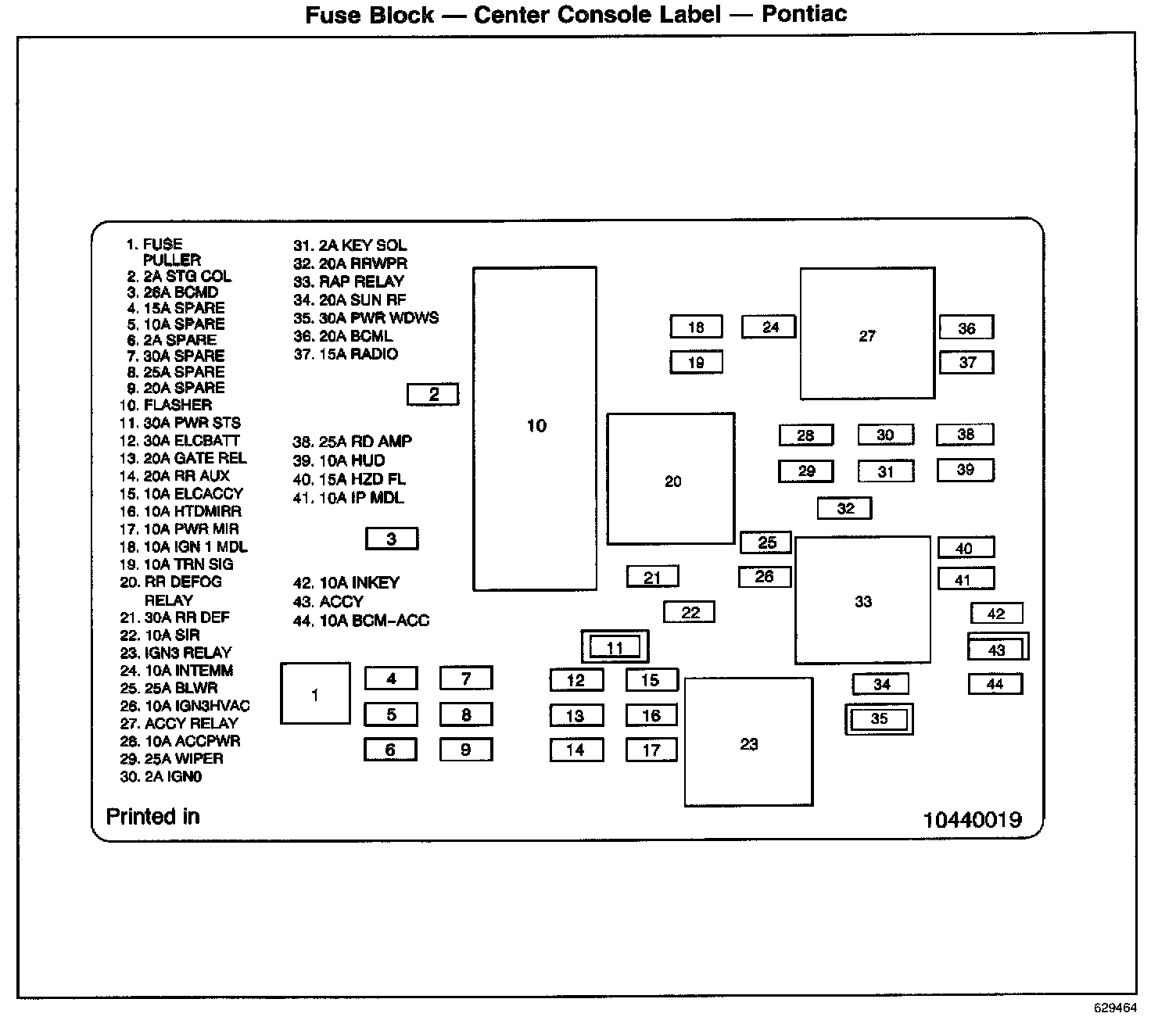 Fuse Block - Center Console Label: