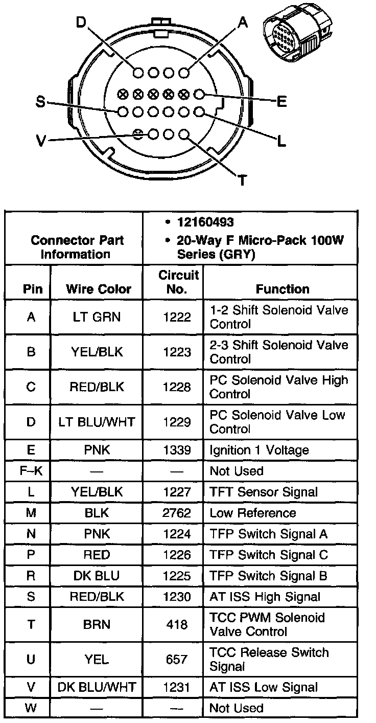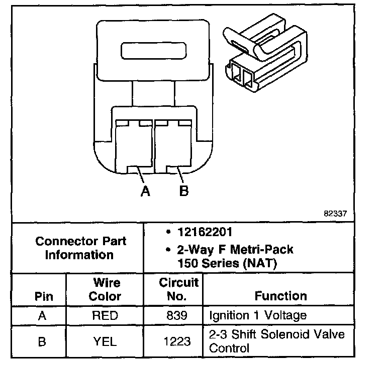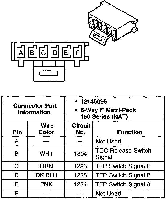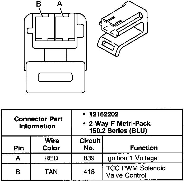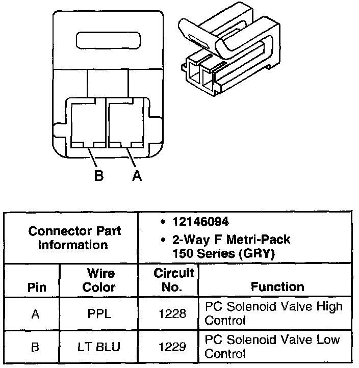 Torque Converter Clutch Pulse Width Modulated Solenoid Valve Connector, Wiring Harness Side