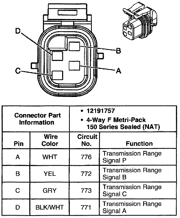 Automatic Transmission Fluid Pressure Manual Valve Position Switch Connector, Wiring Harness Side