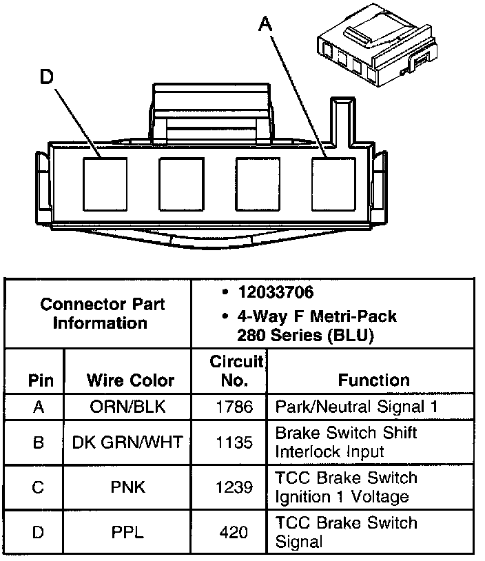 Transmission Shift Interlock/TCC Brake Switch Connector, Wiring Harness Side