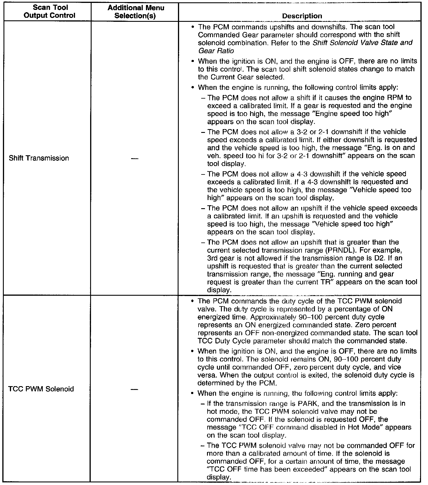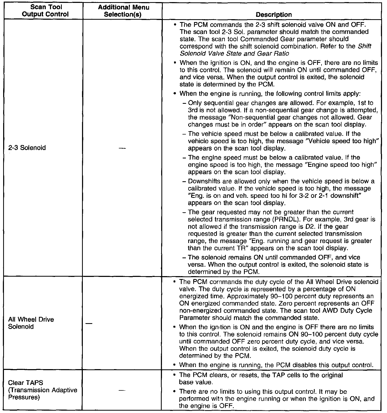 Scan Tool Output Controls