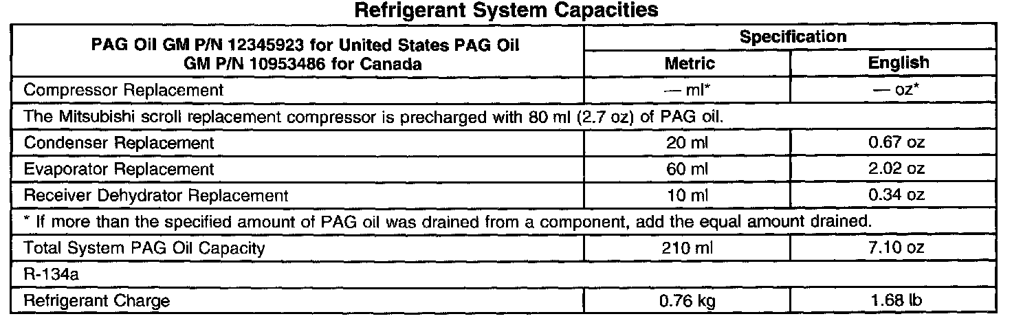 Refrigerant System Capacities - Heating, Ventilation And Air Conditioning: