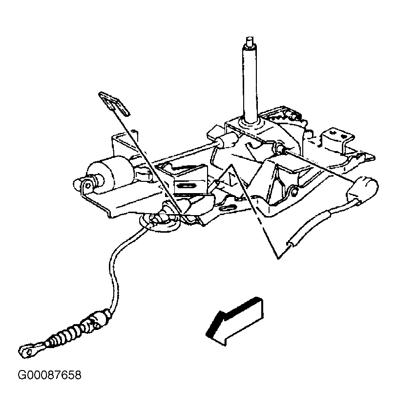 - Install the range selector lever cable to the range selector lever on the transmission. Install the range selector lever cable retainer to the range selector lever on the transmission. See Figure . Lower the vehicle.