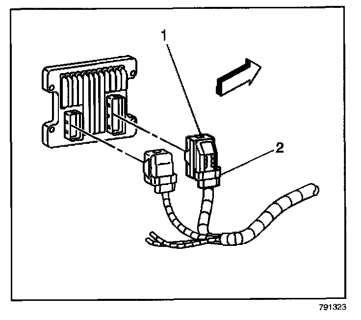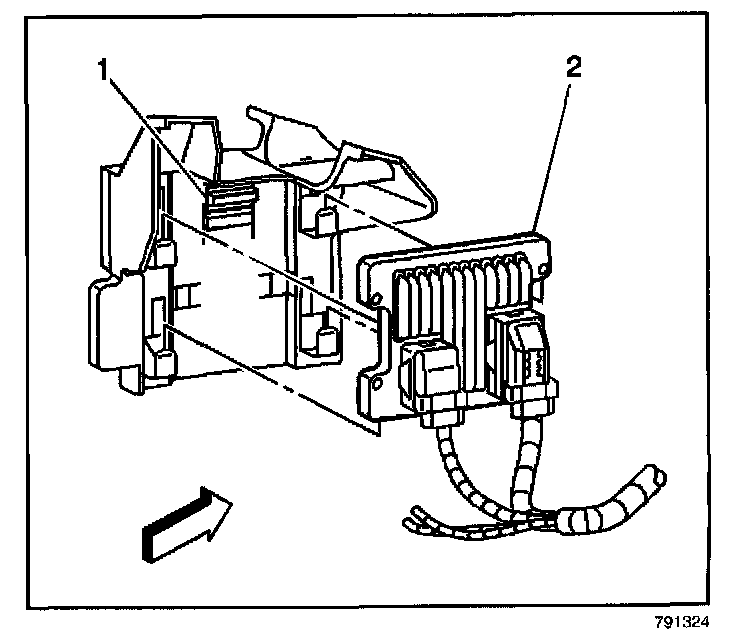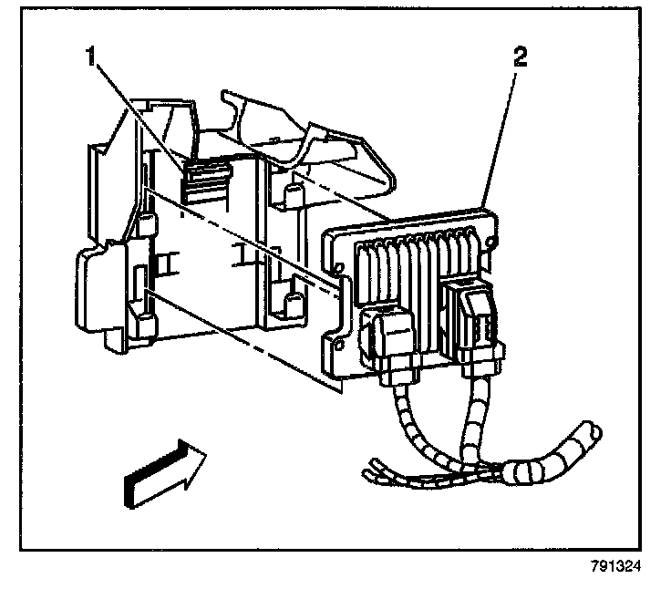 1. Slide the PCM into the PCM bracket. The retaining tab (1) will lock in place.
