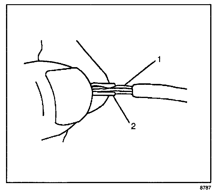 ^ Strip approximately 7.5 mm (5/16 in) of insulation from each wire to be spliced.