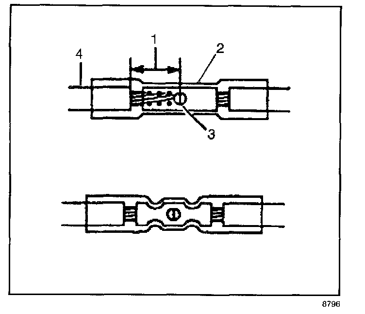 9. Insert the wires into the splice sleeve until the wire hits the barrel stop. The splice sleeve has a stop in the middle of the barrel in order to prevent the wire from passing through the splice (3).