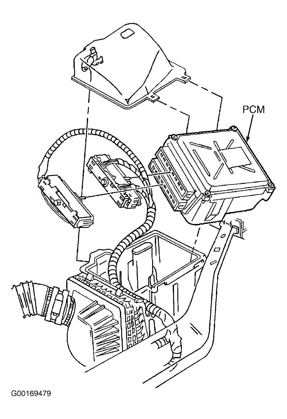 The Powertrain Control Module (PCM) has electronic controls to reduce exhaust emissions while maintaining excellent driveability and fuel economy. PCM is located near air filter box. See Fig 1 . The PCM is the control center of this system. PCM monitors numerous engine and vehicle functions. PCM constantly looks at the information from various sensors and other inputs, and controls the systems that affect vehicle performance and emissions. PCM also performs the diagnostic tests on various parts of the system. PCM can recognize operational problems and alert the driver via the Malfunction Indicator Light (MIL). When PCM detects a malfunction, it stores a Diagnostic Trouble Code (DTC). The problem area is identified by the particular DTC that is set. The control module supplies a buffered voltage to various sensors and switches. Review components and wiring diagrams in order to determine which systems are controlled by the PCM.