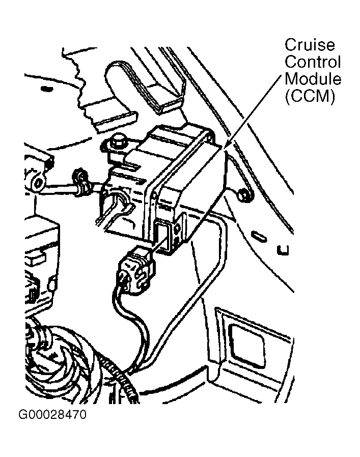 | Cruise Control Module (CCM) | At left side of engine compartment, near strut tower. See Figure . |