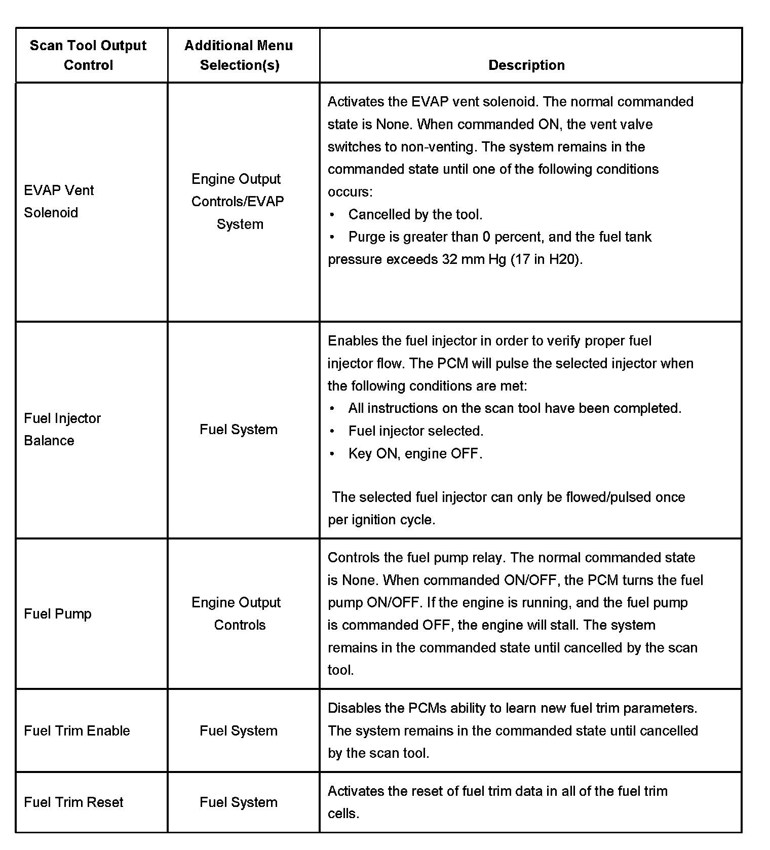 Scan Tool Output Controls