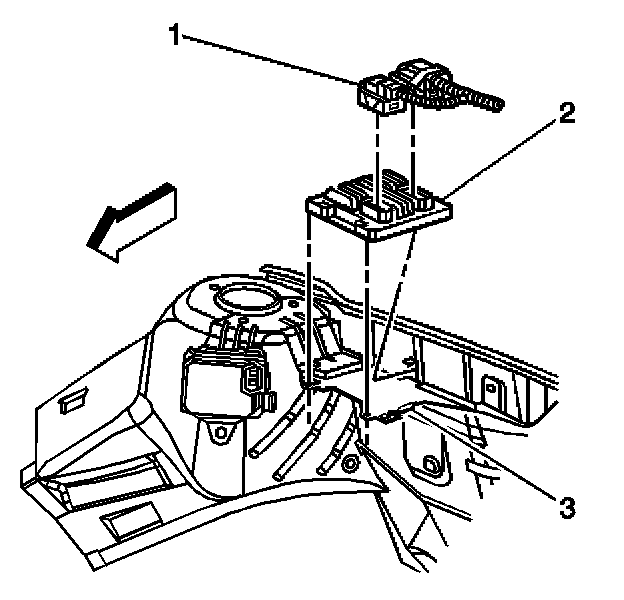 1. Push the PCM (2) into the PCM bracket (3). The retaining tab will lock in place.