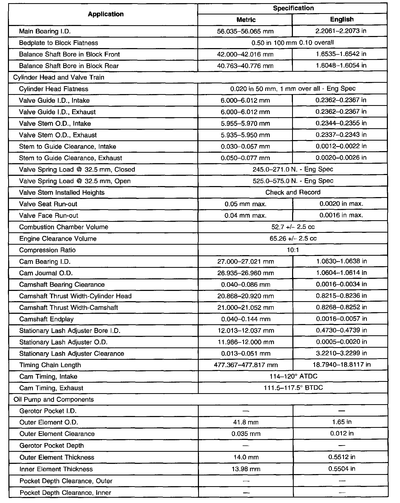 Engine Mechanical Specifications