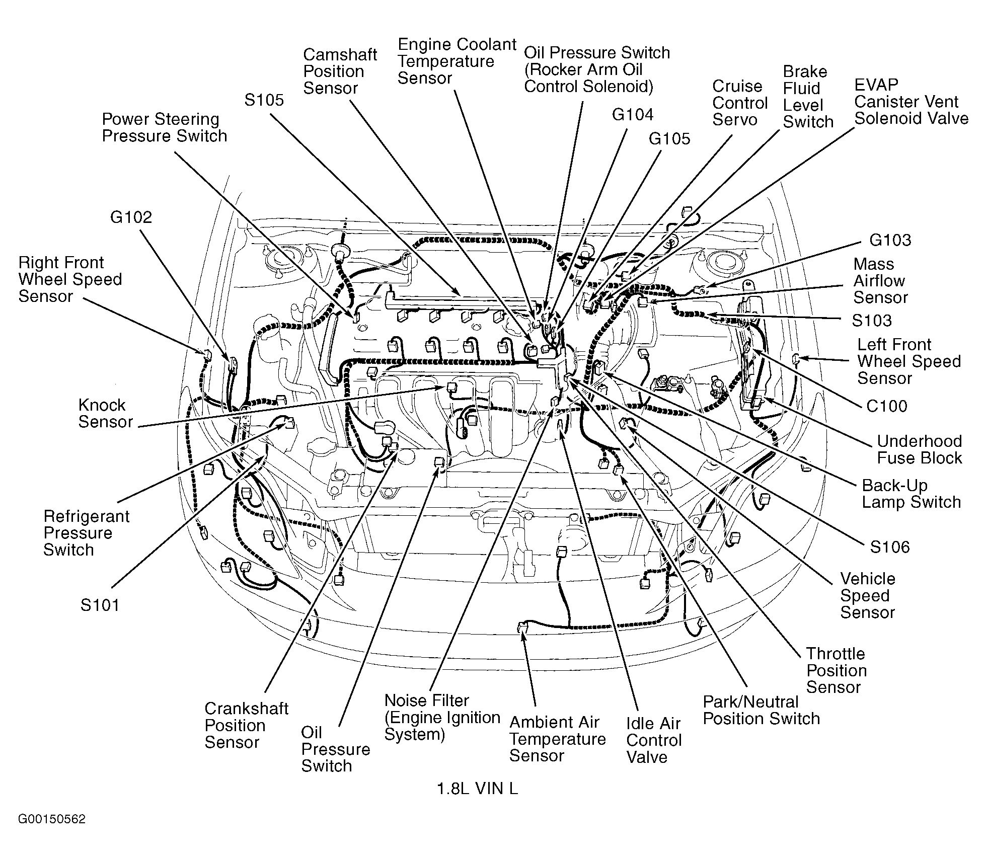 | Underhood Fuse Block (1.8L VIN L) | Left side of engine compartment, mounted to inner fender. See Figure . |
