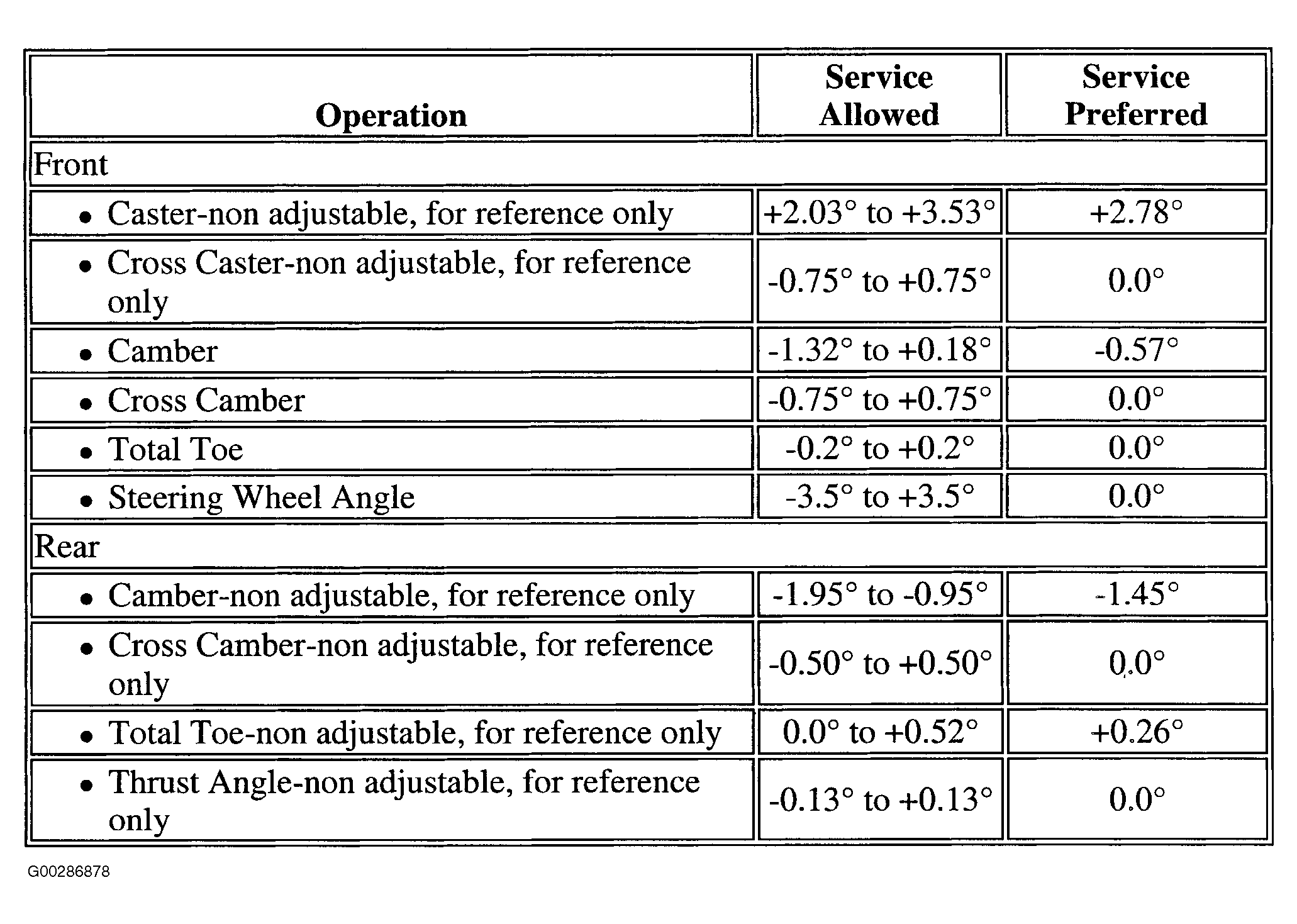Wheel Alignment Specifications