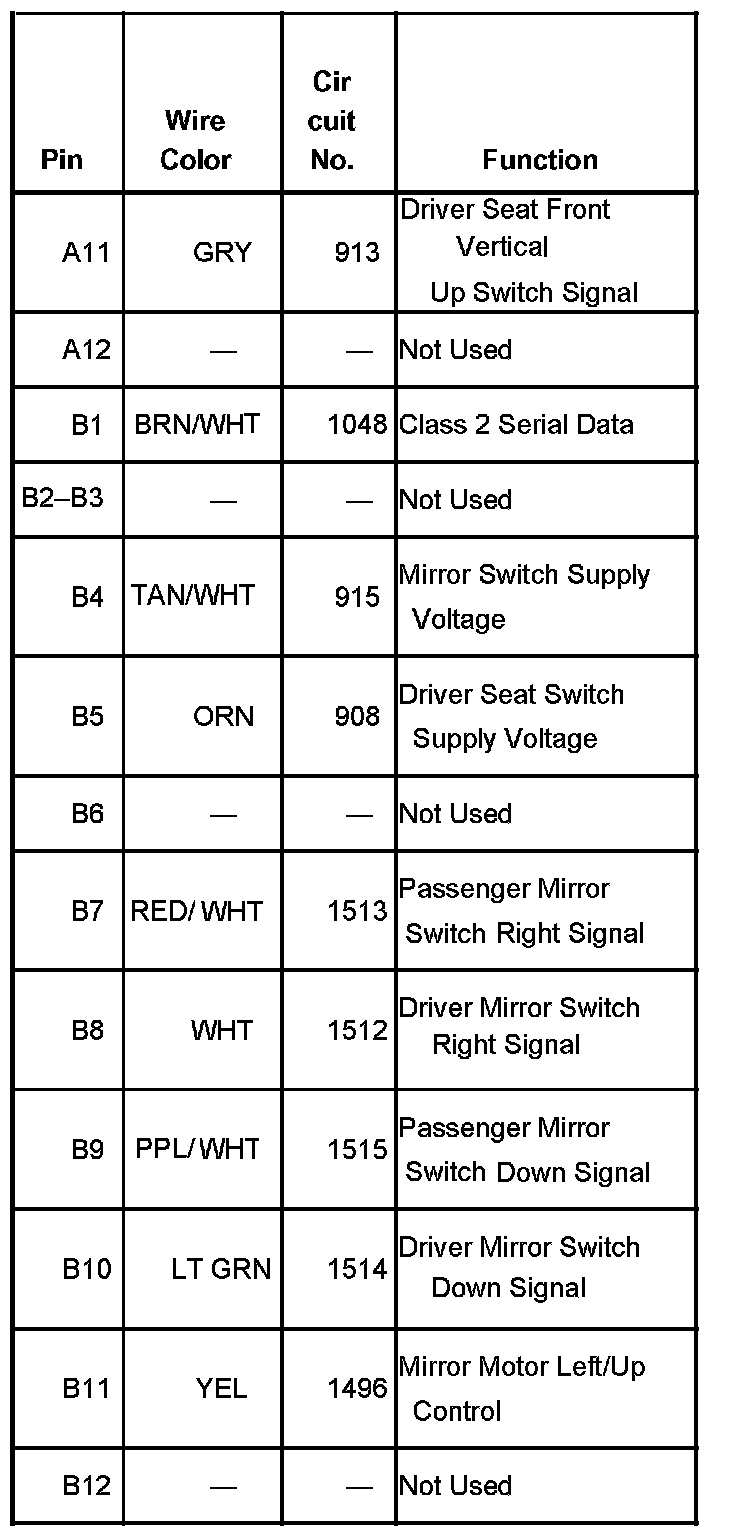 Memory Seat And Mirror Module C4 (With RPO Code A43) Part 2: