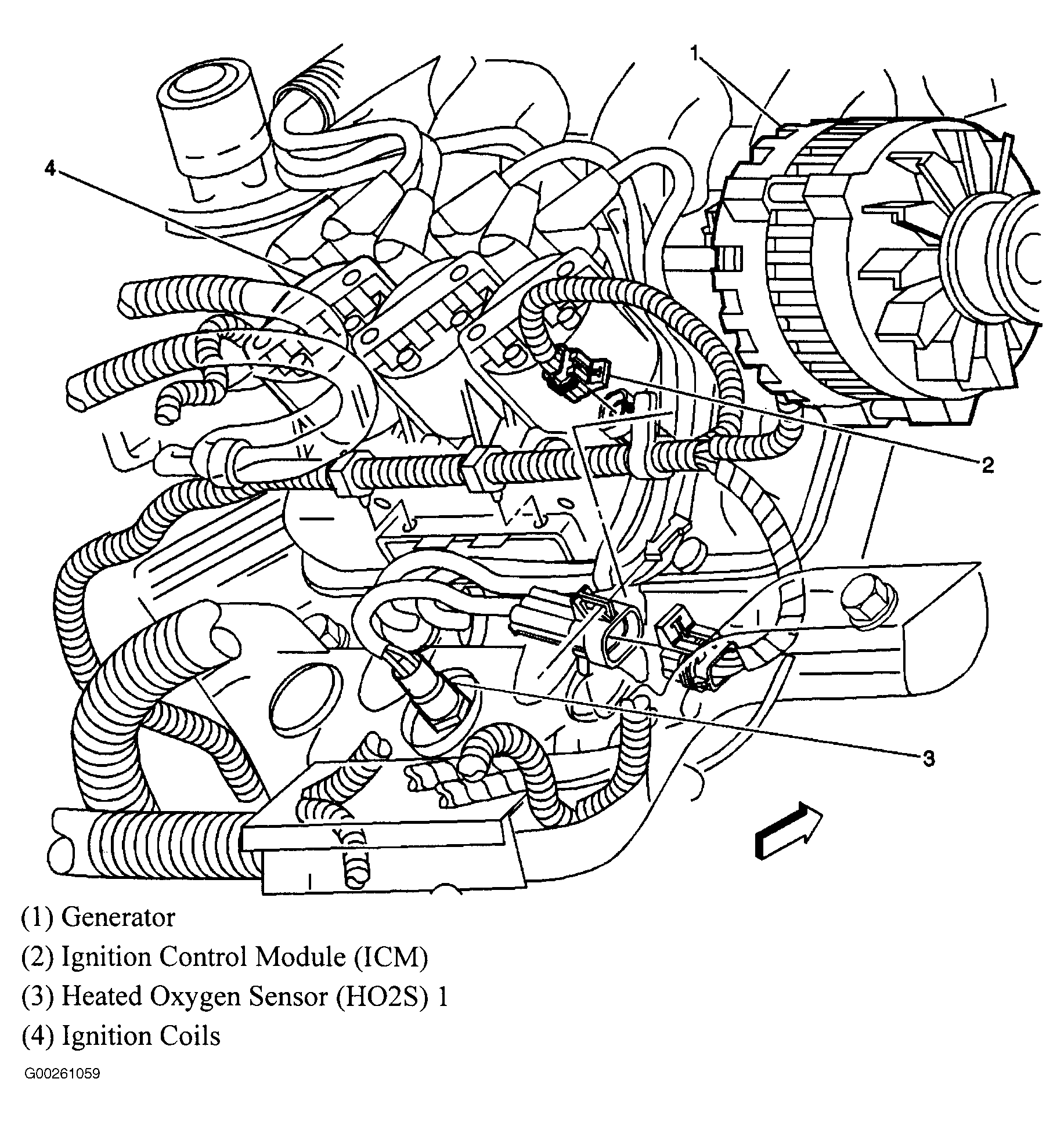 Ignition Control Module On top of right valve cover. See Figure.