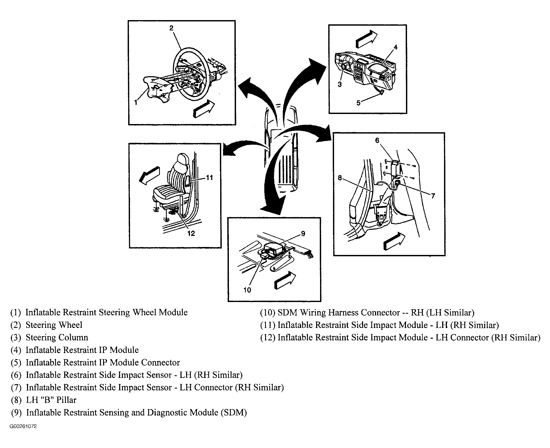 Inflatable Restraint I/P Module Right side of dash, above glove box. See Figure.