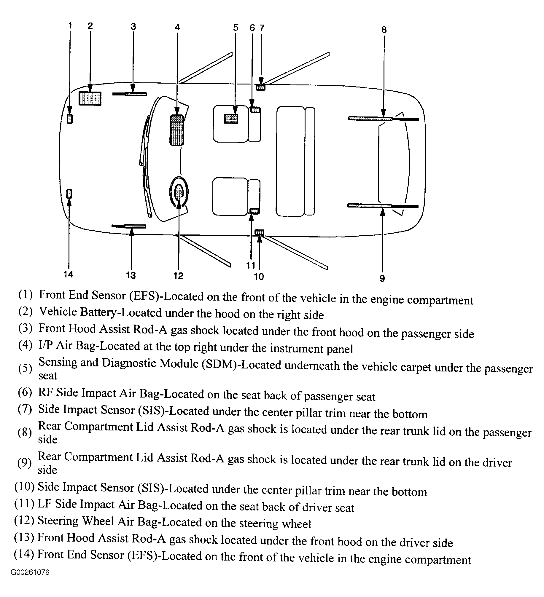 Sensing & Diagnostic Module (SDM) Under front passenger seat, below carpet. See Figure.