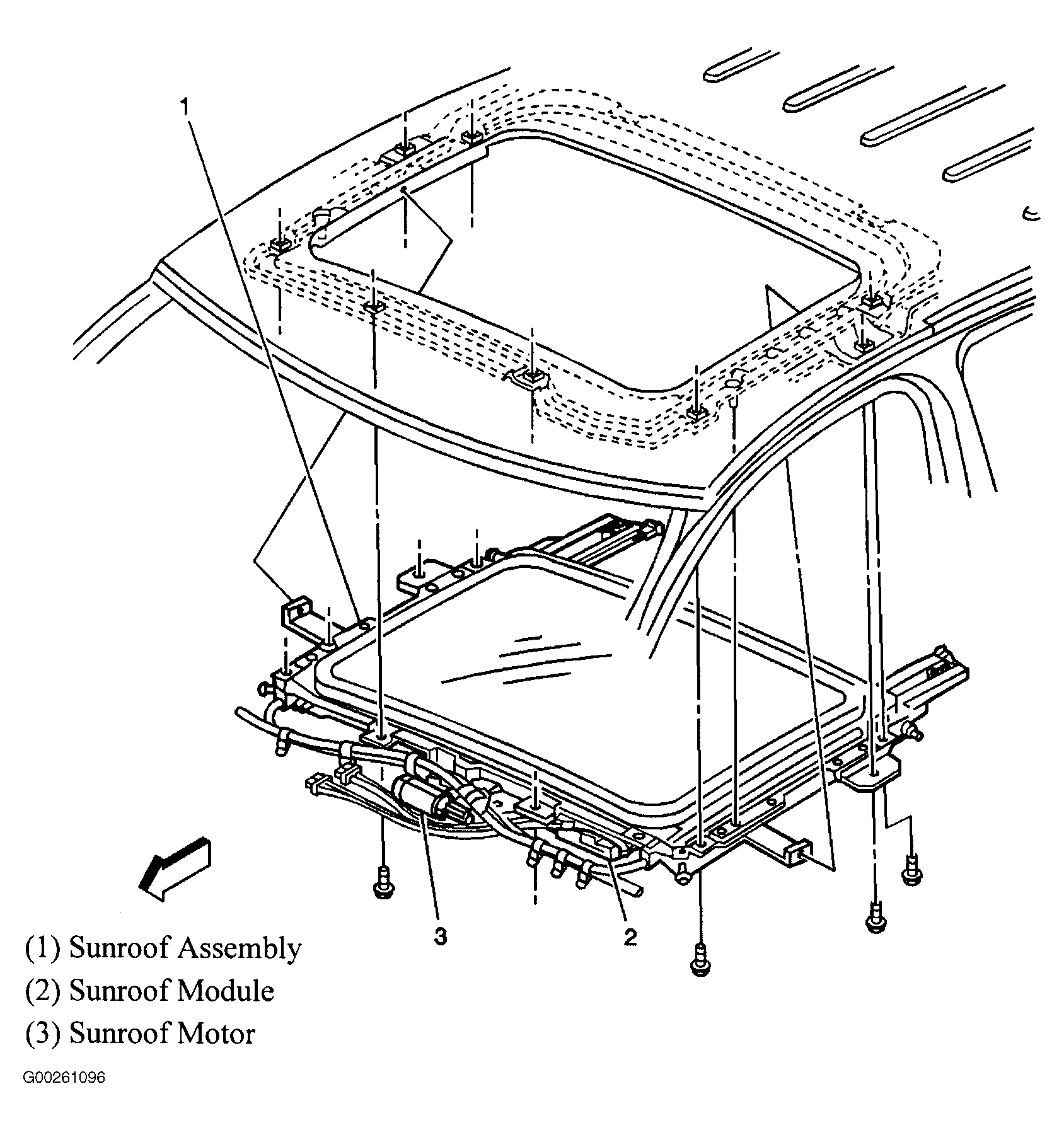 Sun Roof Module In sun roof assembly. See Figure.