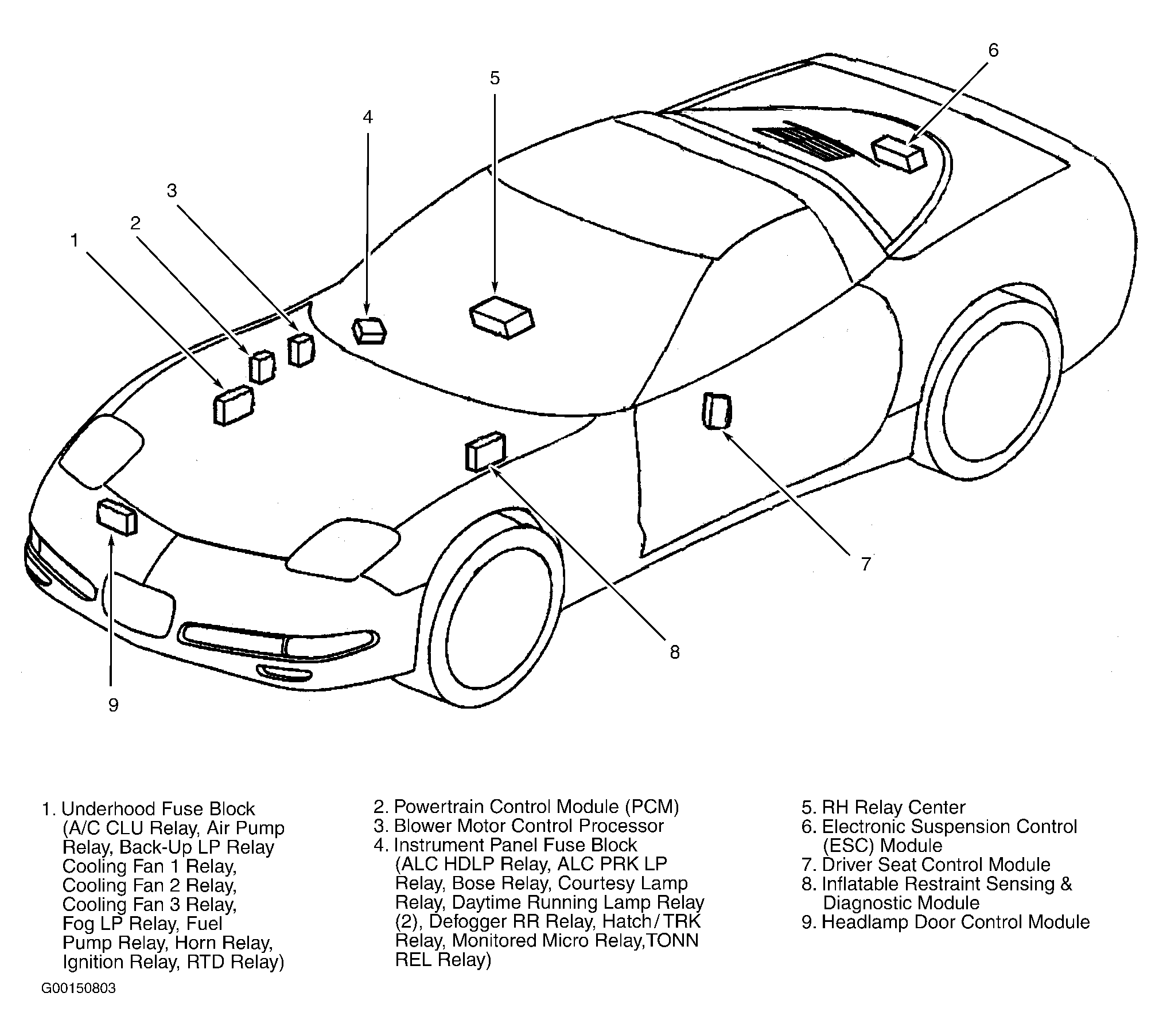 | RH Relay Center | Under center of right seat. See Figure . |