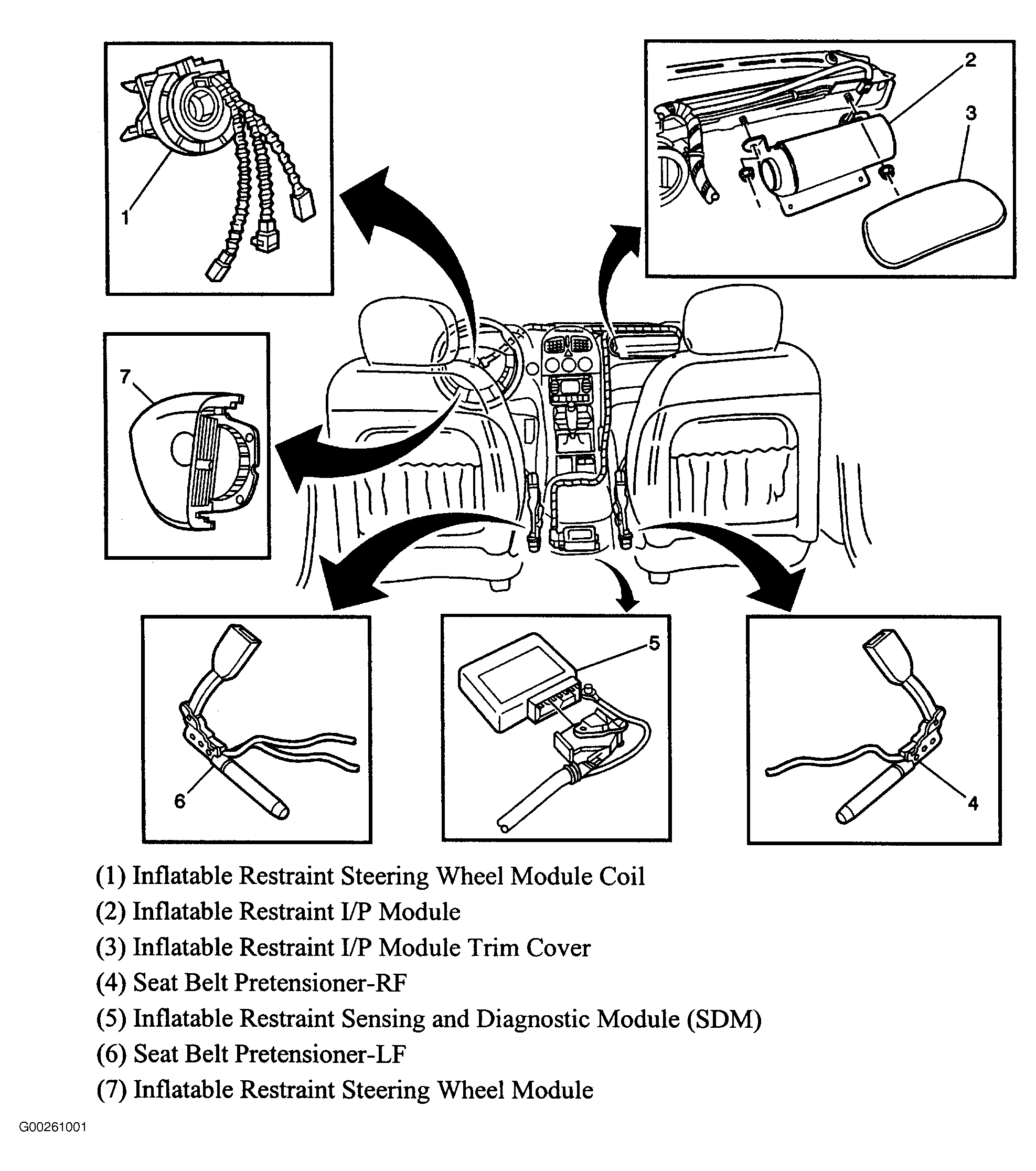 | Inflatable Restraint Sensing & Diagnostic Module (SDM) | Below center console. See Figure . |
