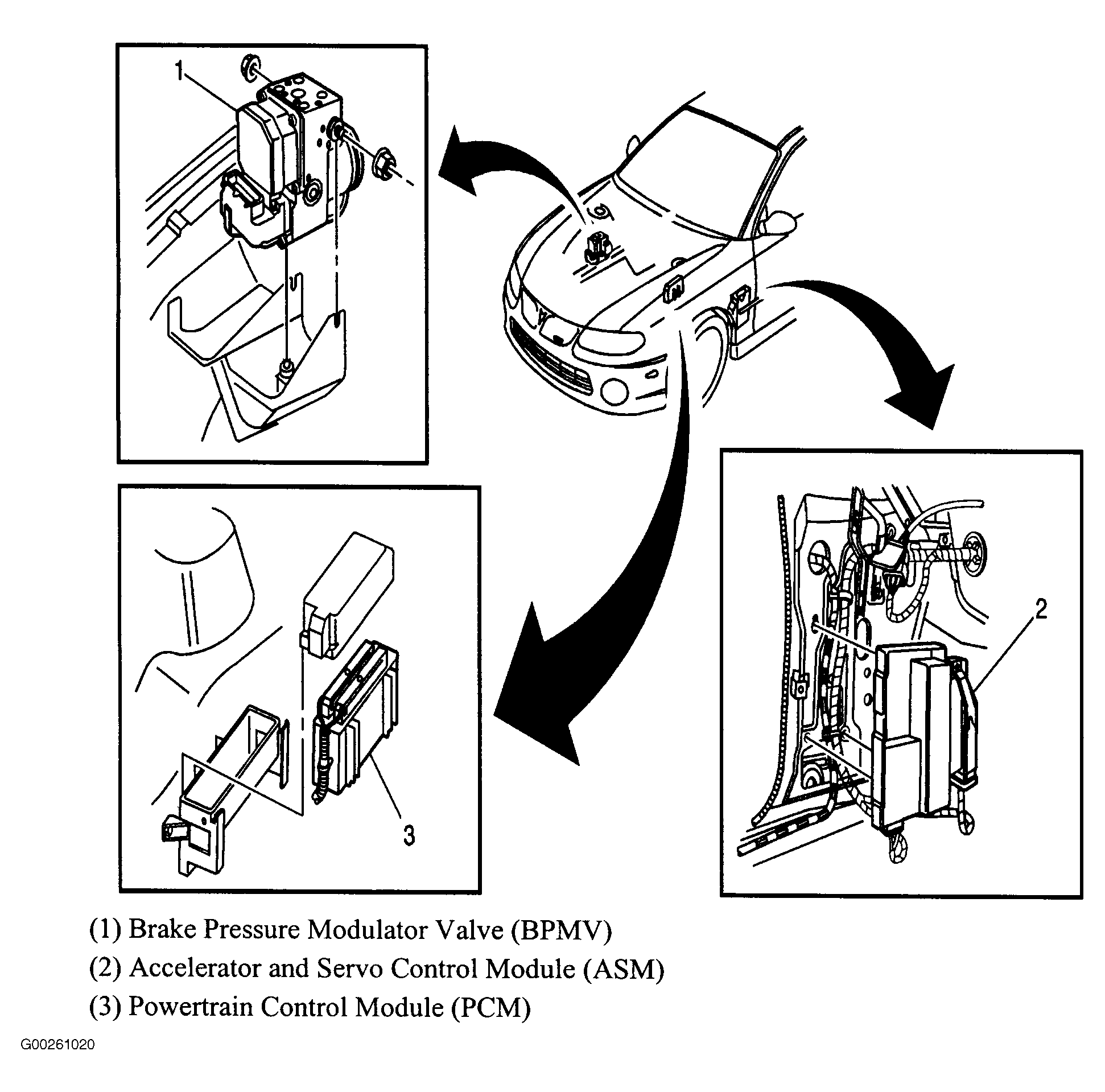 | Accelerator And Servo Control Module (ASM) | Left kick panel. See Figure . |