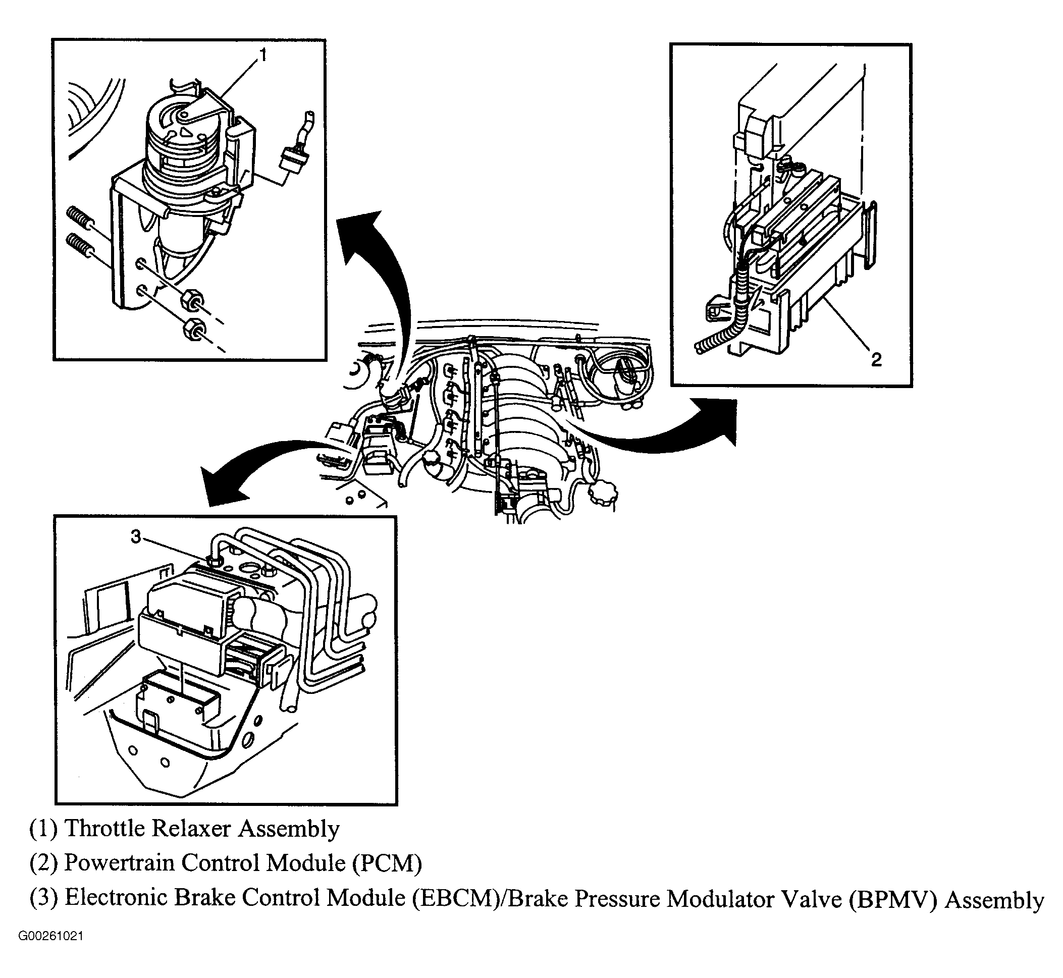 | Cruise Control Module | Right side of engine compartment. See Figure . |