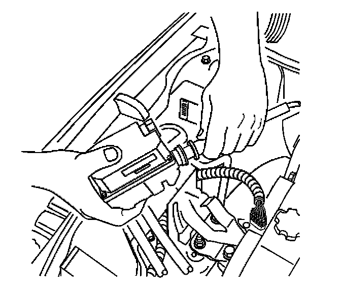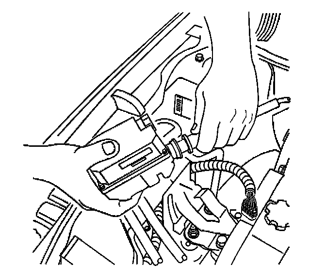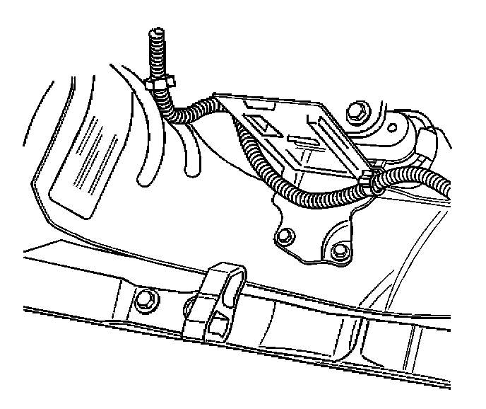 5. Attach the retainer strap to the cruise control module mounting bracket pressing into place until fully seated.