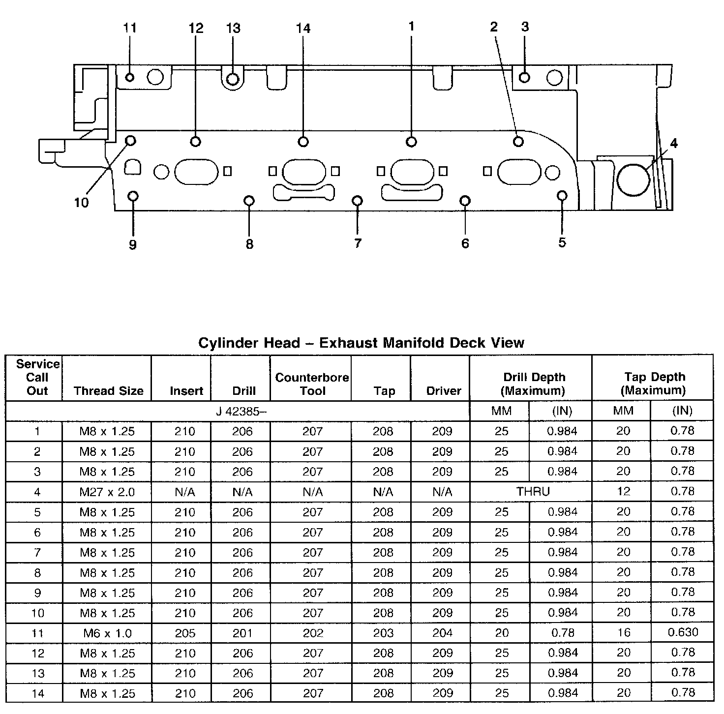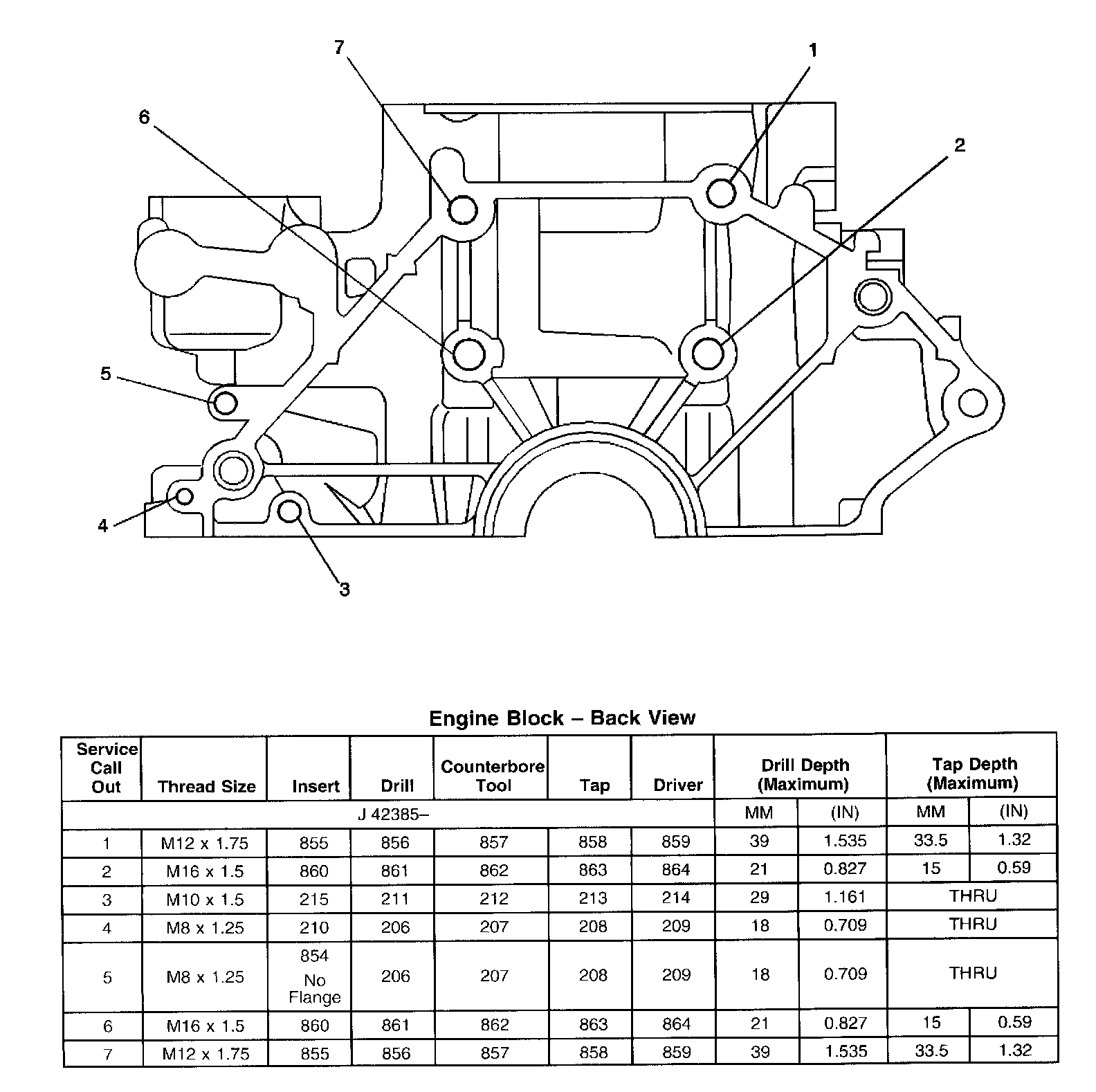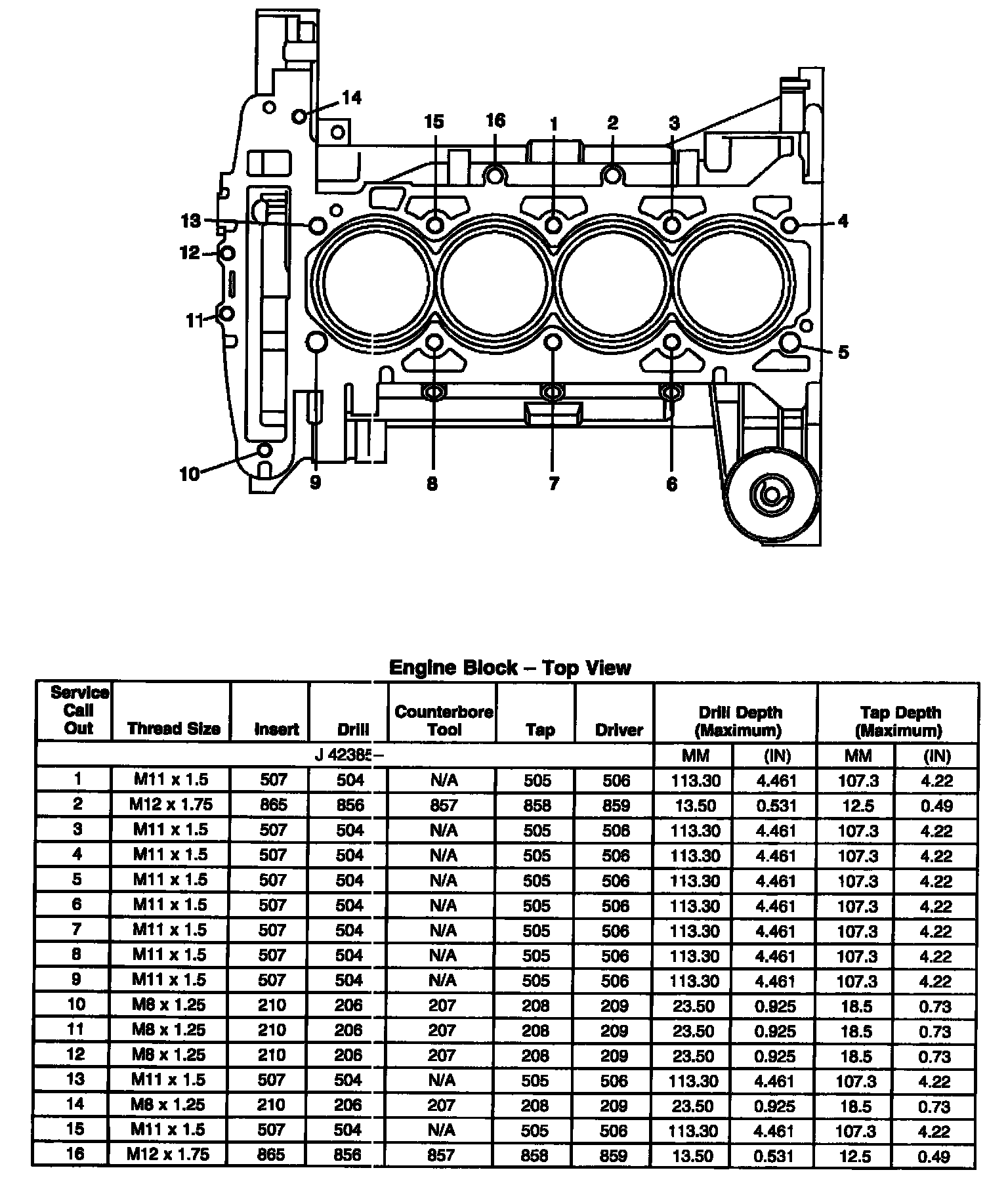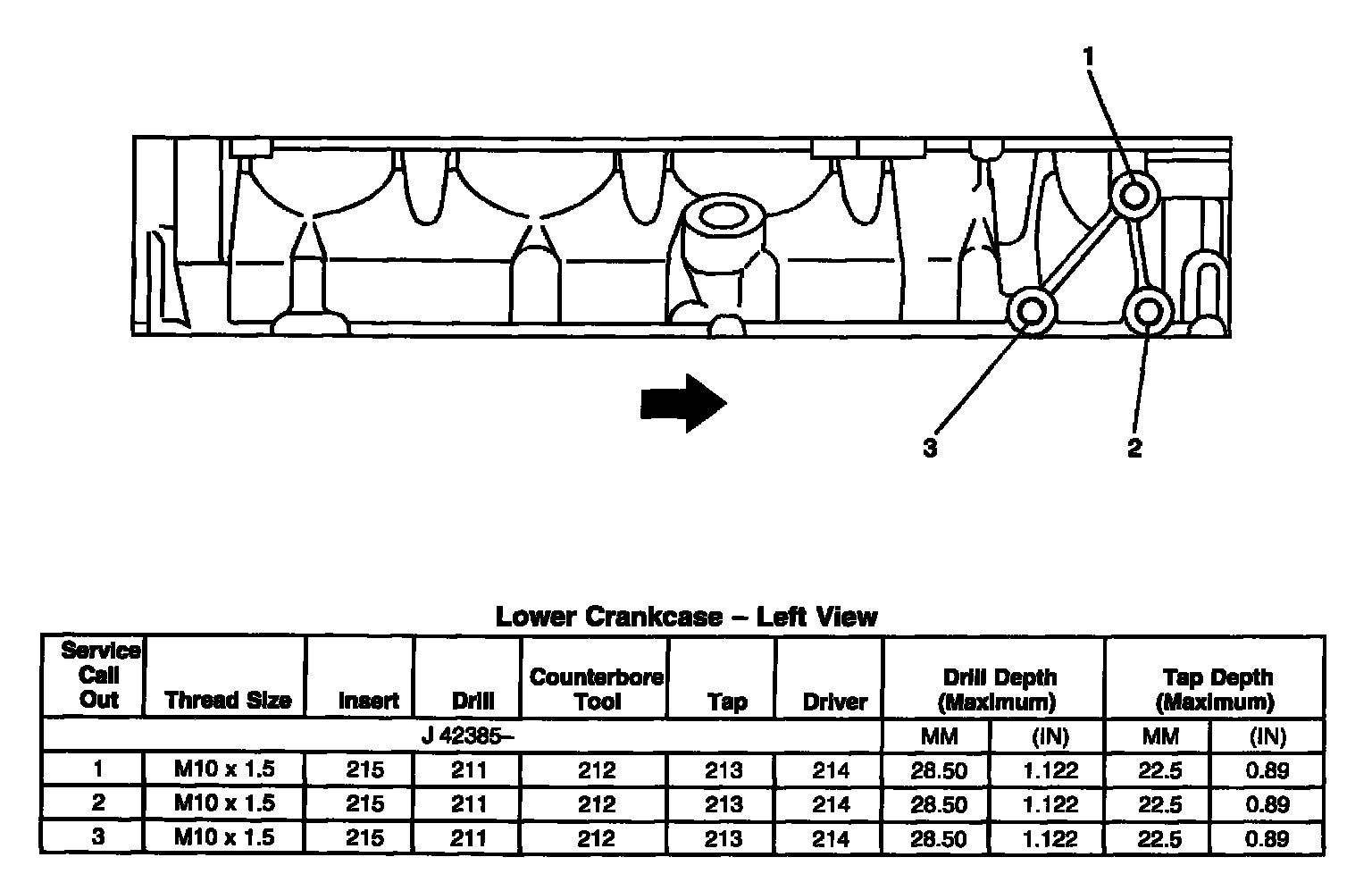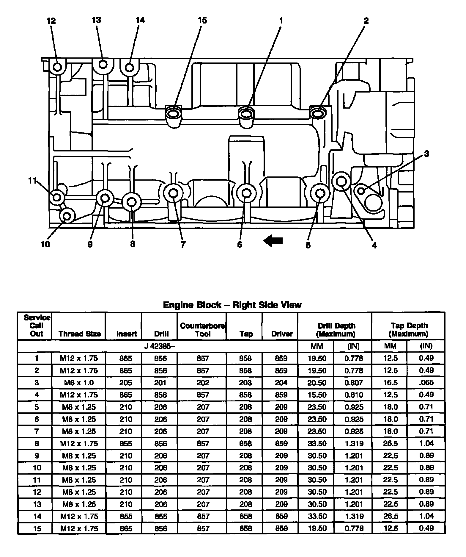 Thread Repair SpecificationsEngine Block - Front View