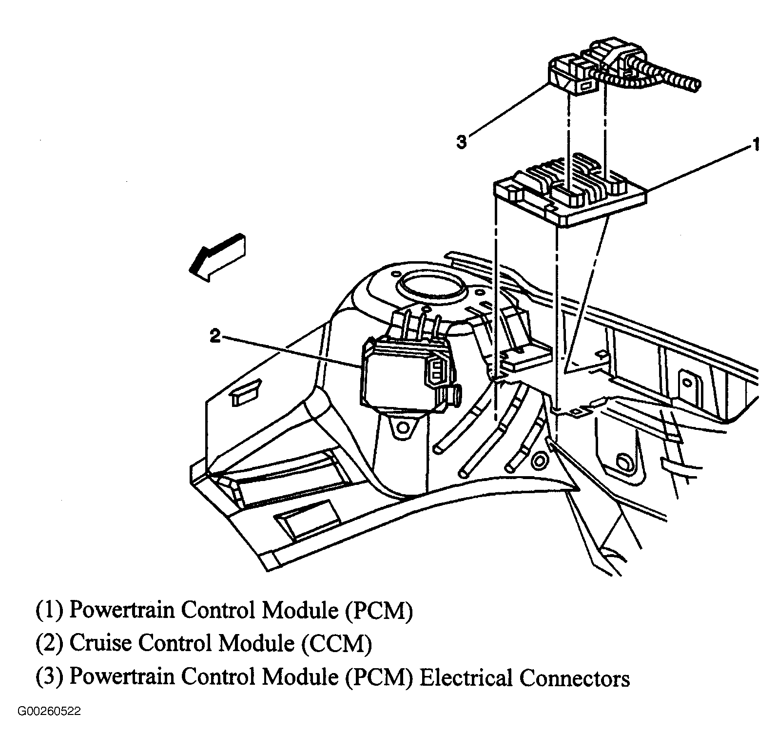 | Cruise Control Module (CCM) | On rear right side of engine compartment. See Figure . |