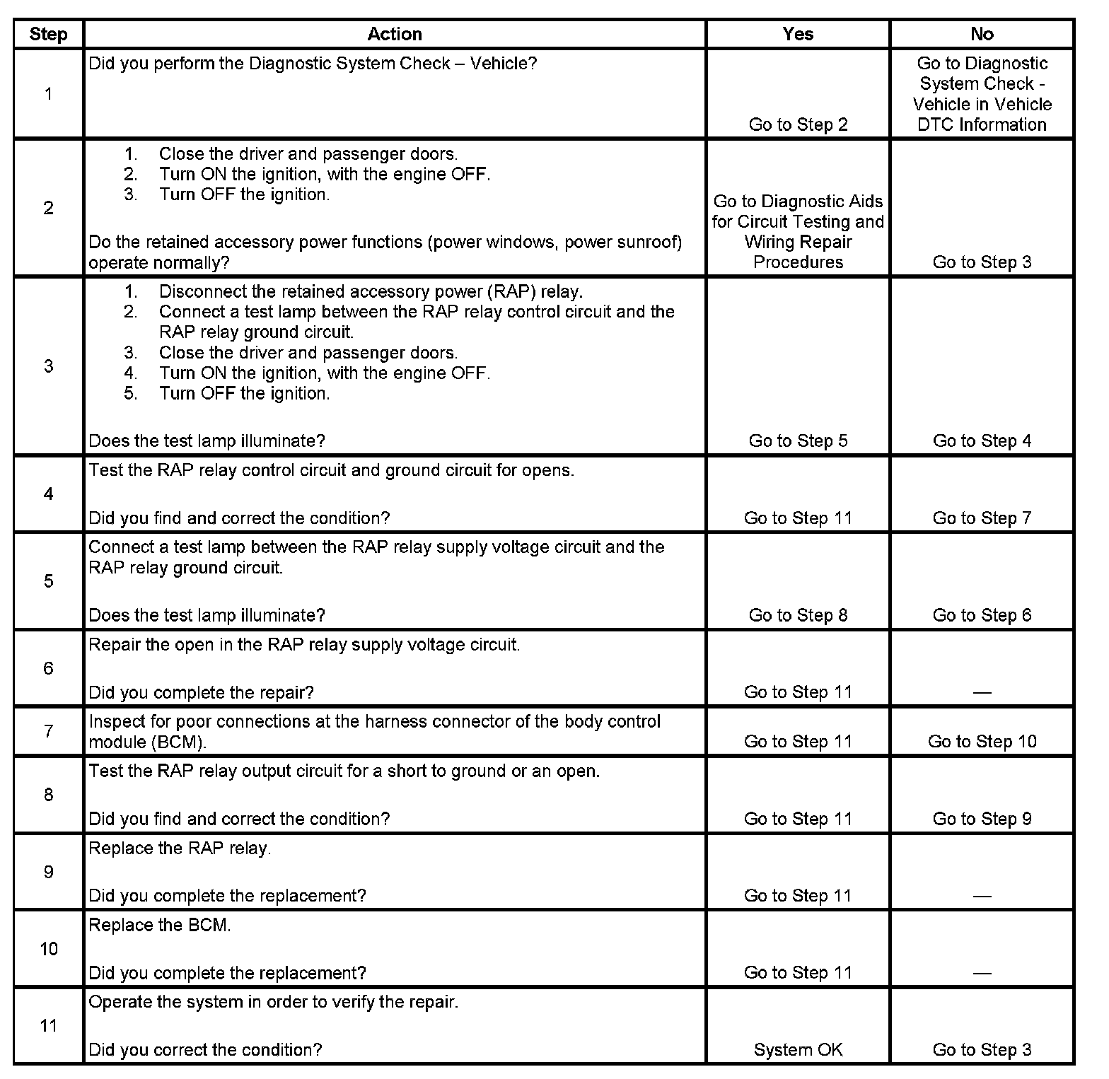Retained Accessory Power (RAP) Inoperative