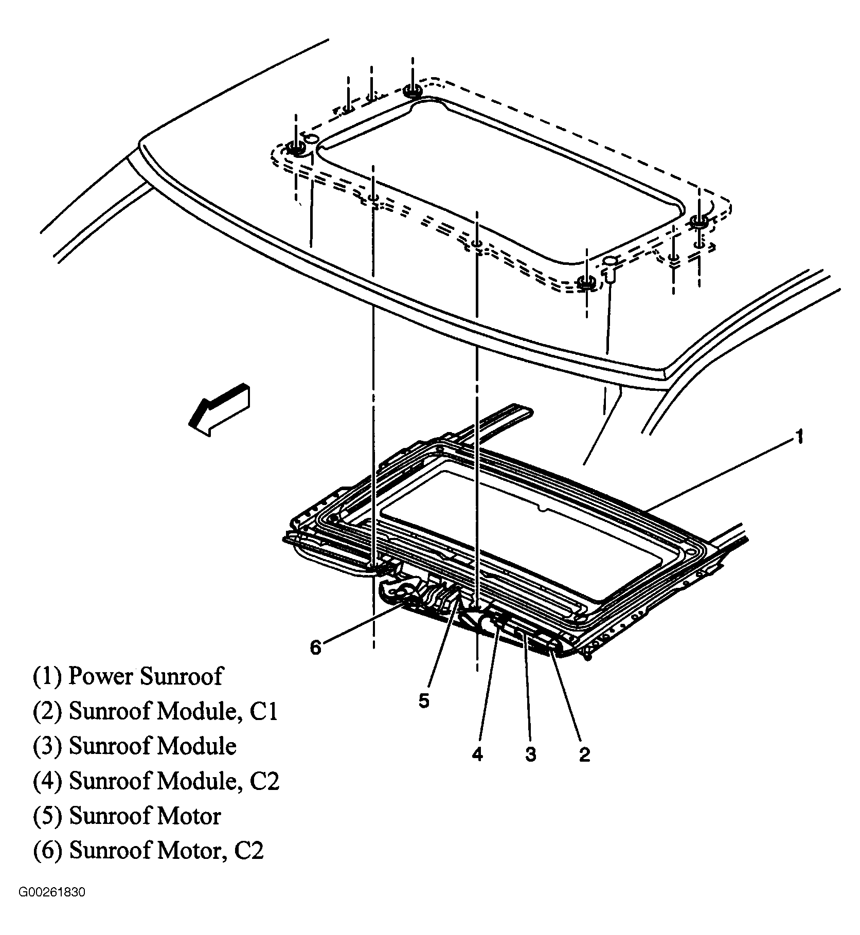 | Sun Roof Module | Front center of sun roof module. See Figure. |