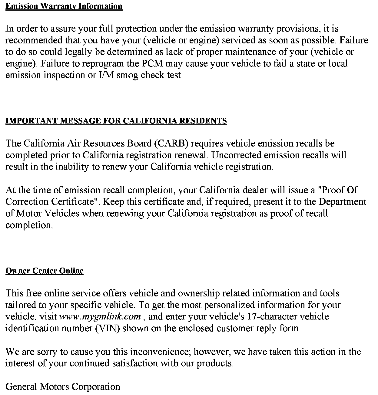 Owner Letter