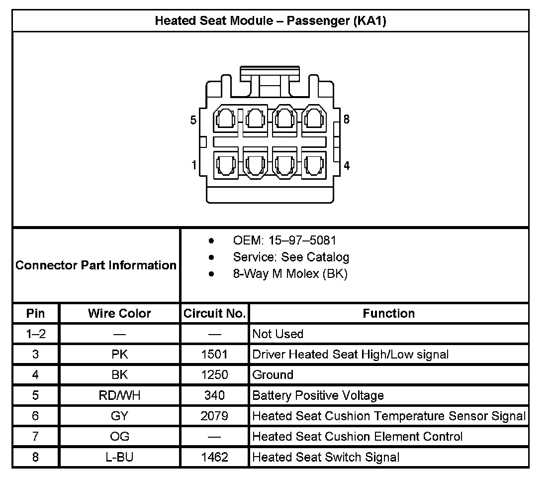 Heated Seat Module - Passenger (With RPO Code KA1):