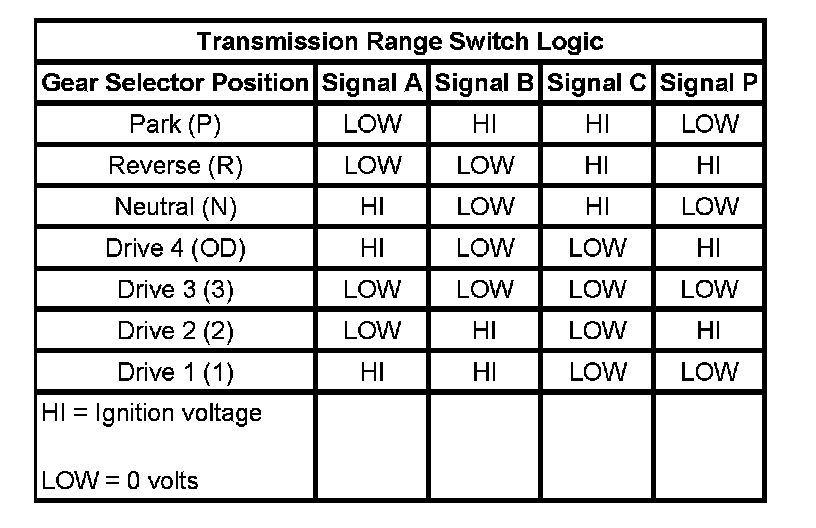 Transmission Range Switch Logic: