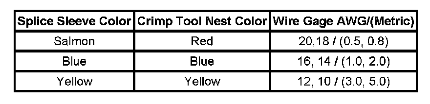 5. Select the proper splice sleeve (2) and the required crimp nest tool, refer to the Crimp and Seal Splice Table.