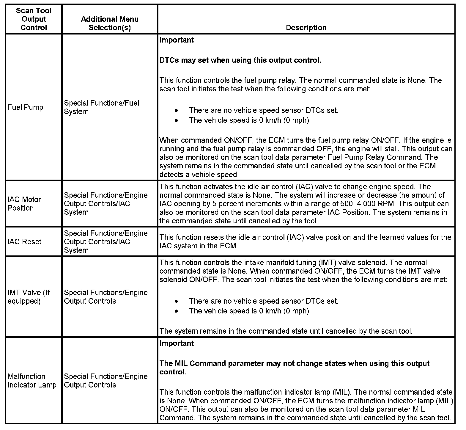 Scan Tool Output Controls (With Throttle Actuator Control)
