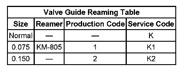 Valve Guide Reaming Table: