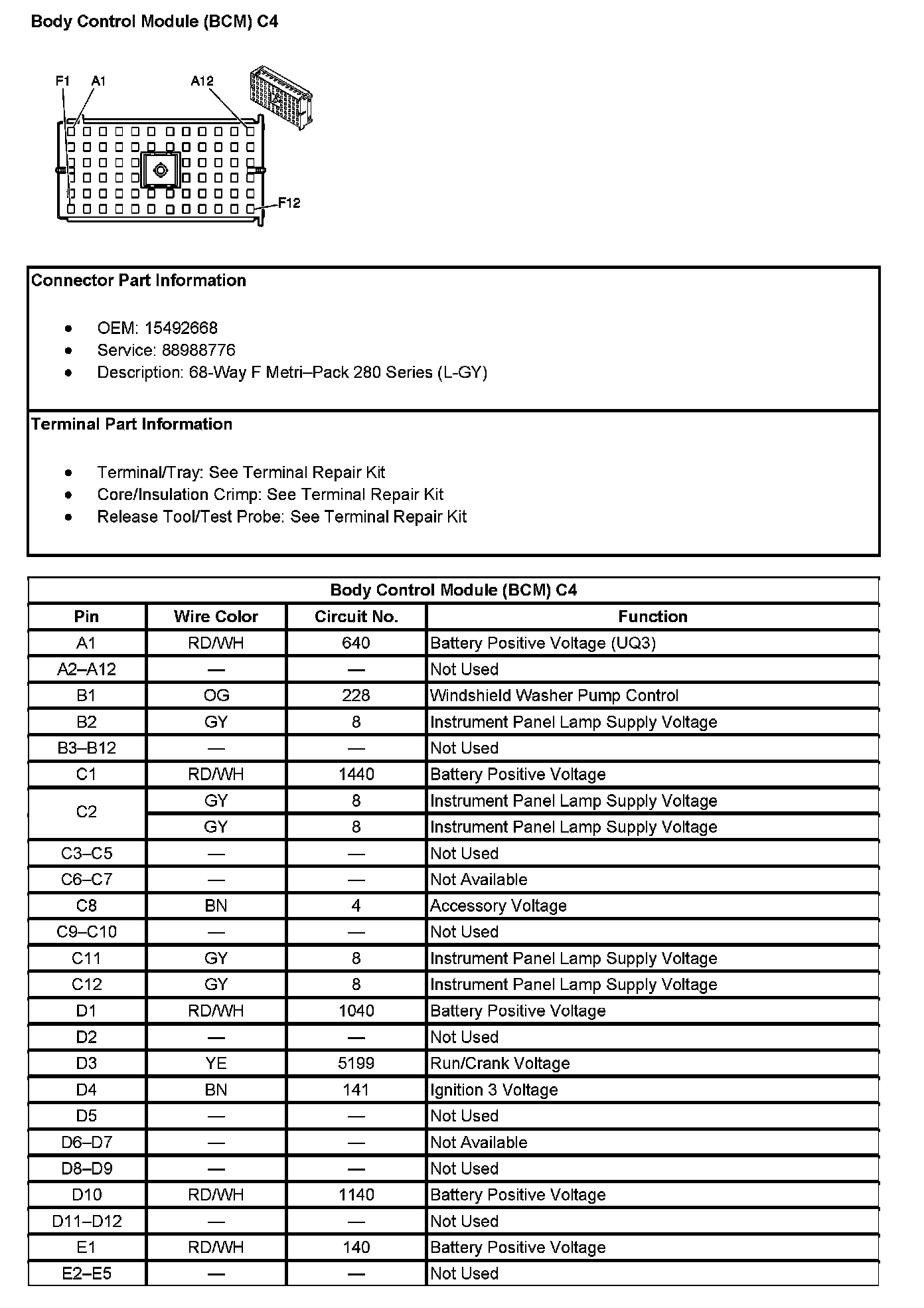 Body Control Module (BCM) C4 (Pin A1 To E5):