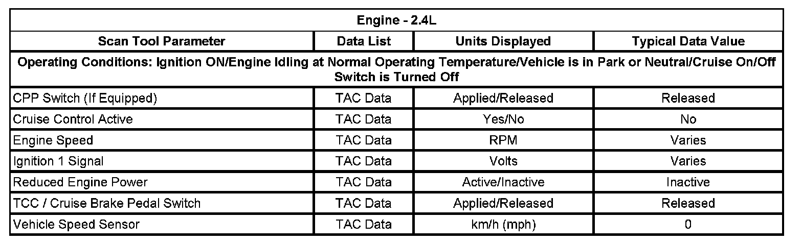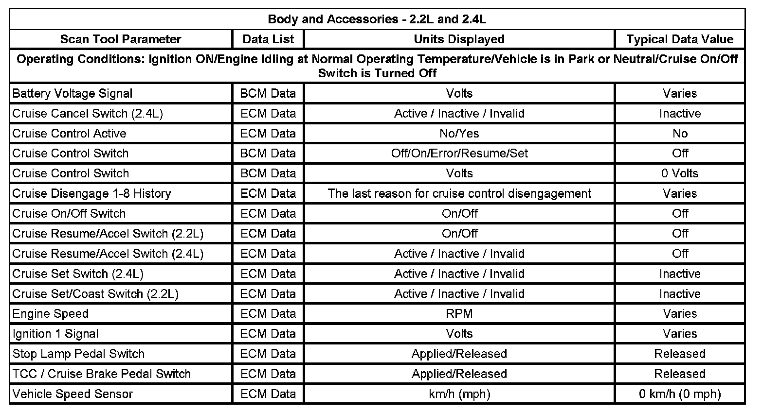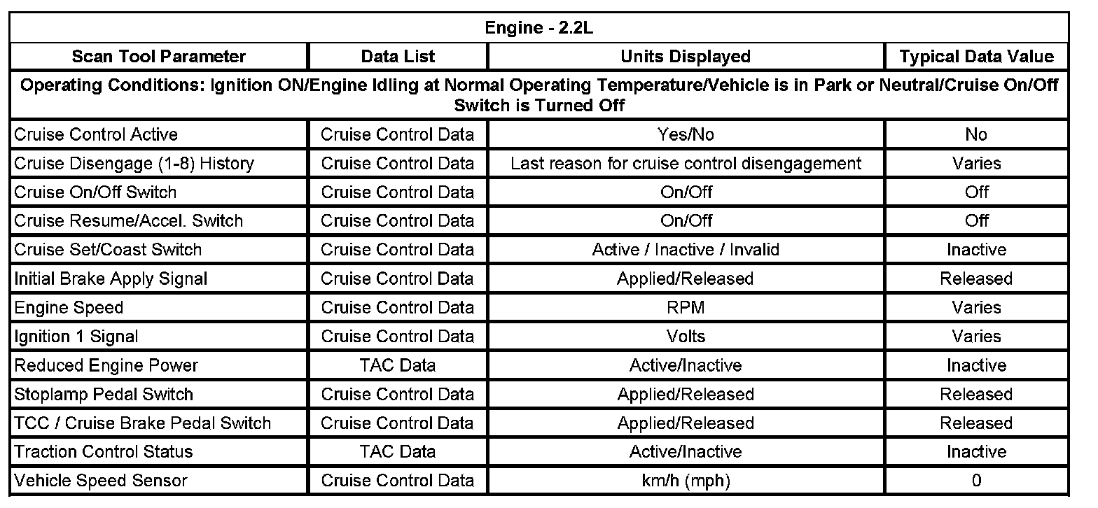 Home >> Pontiac >> 2007 >> G5 L4-2.2L >> Repair and Diagnosis >> Cruise Control >> Testing and Inspection >> Scan Tool Testing and Procedures >> Scan Tool Data List