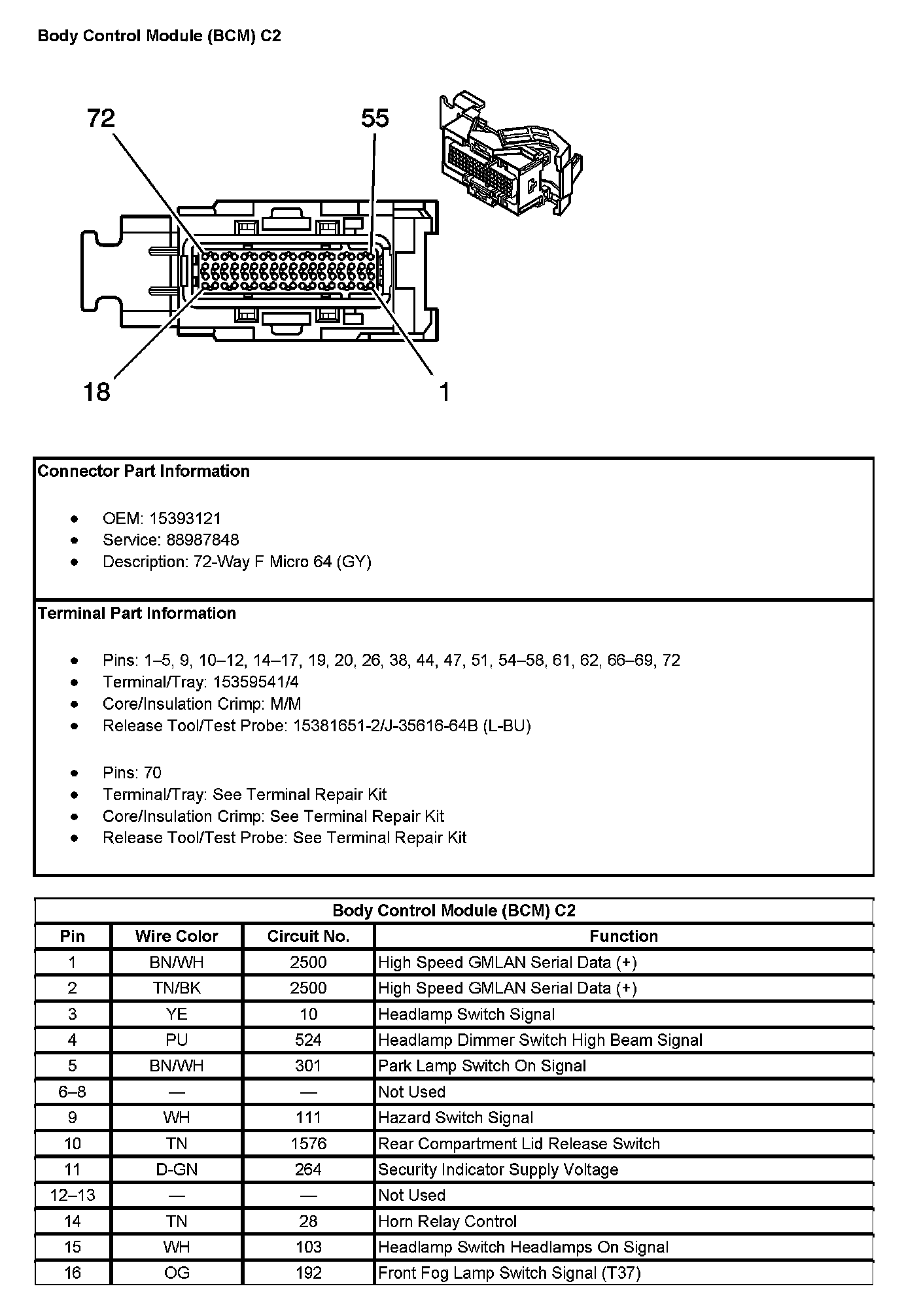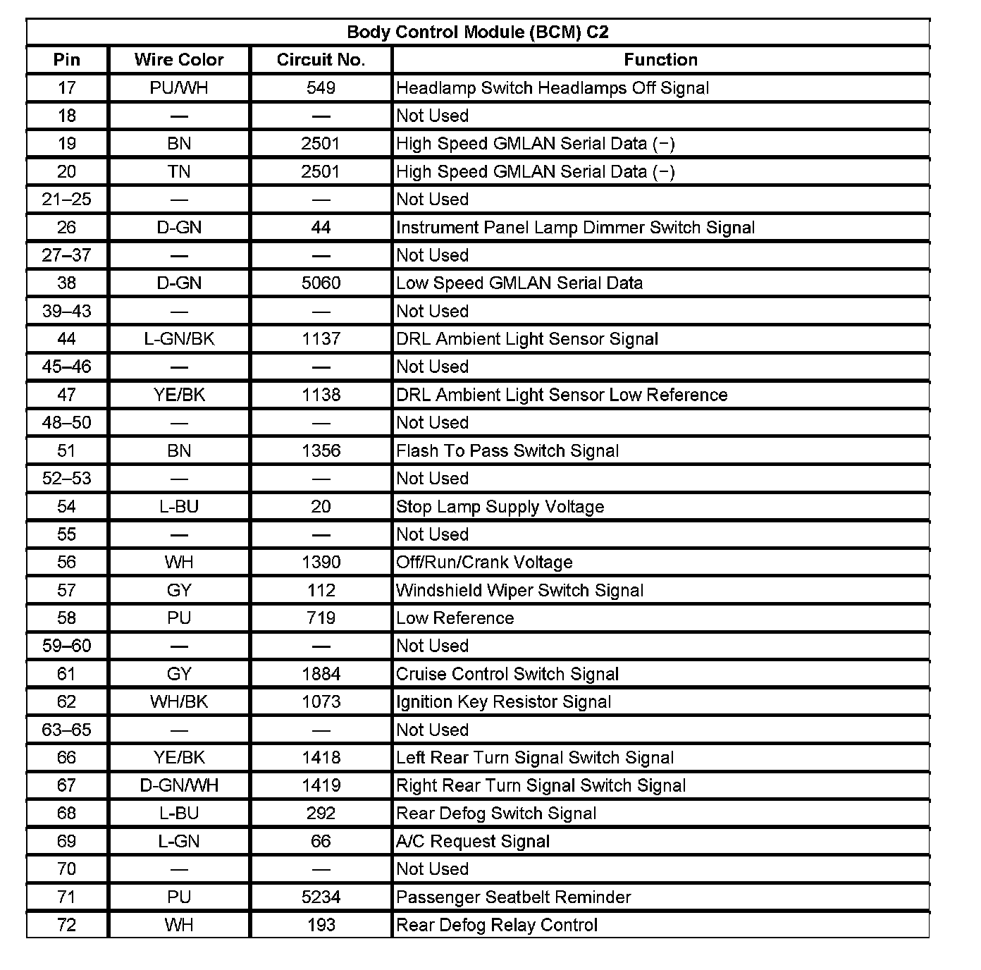Body Control Module (BCM) C2 (Pin 17 To 72):