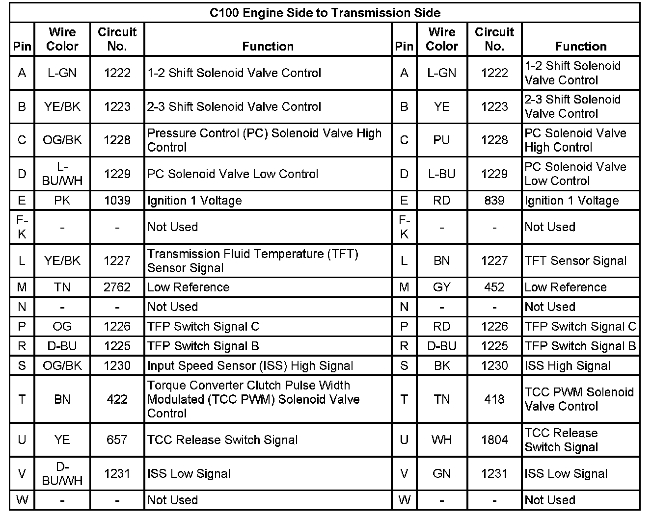 C100 Engine Side to Transmission Side: