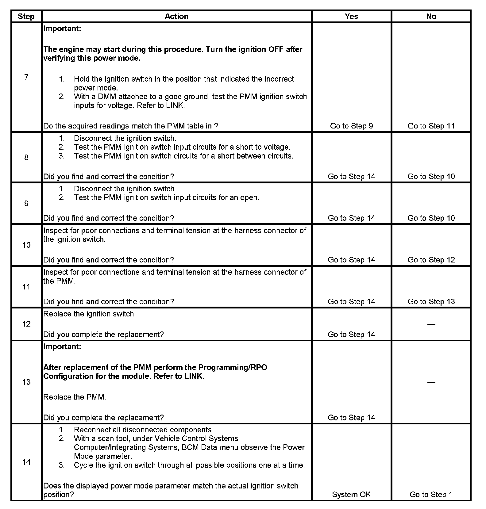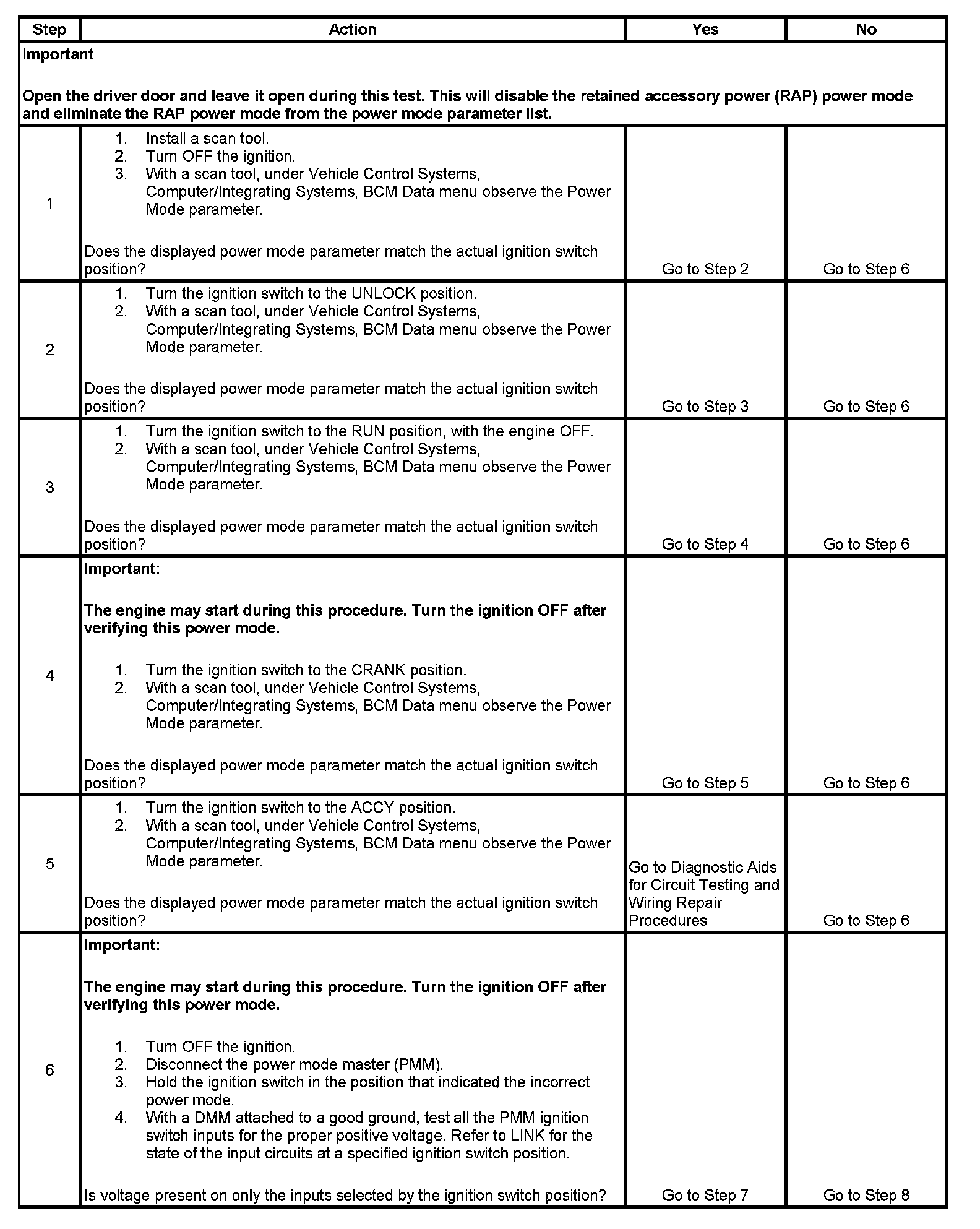 8. If any ignition switch parameters that should be inactive in the present ignition switch position are active, 2 ignition switch signal circuits may be shorted together.