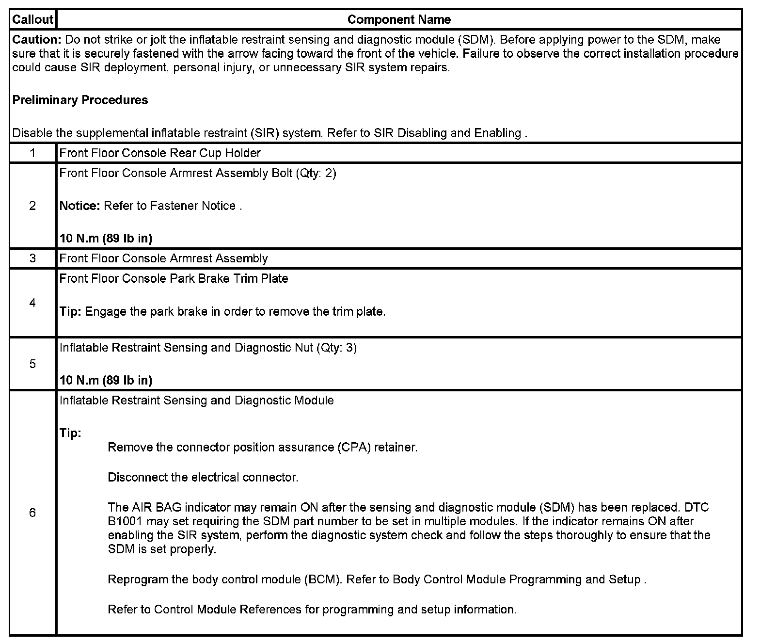 Inflatable Restraint Sensing and Diagnostic Module Replacement
