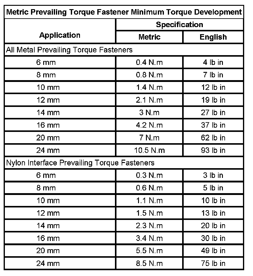 Prevailing Torque Fasteners
